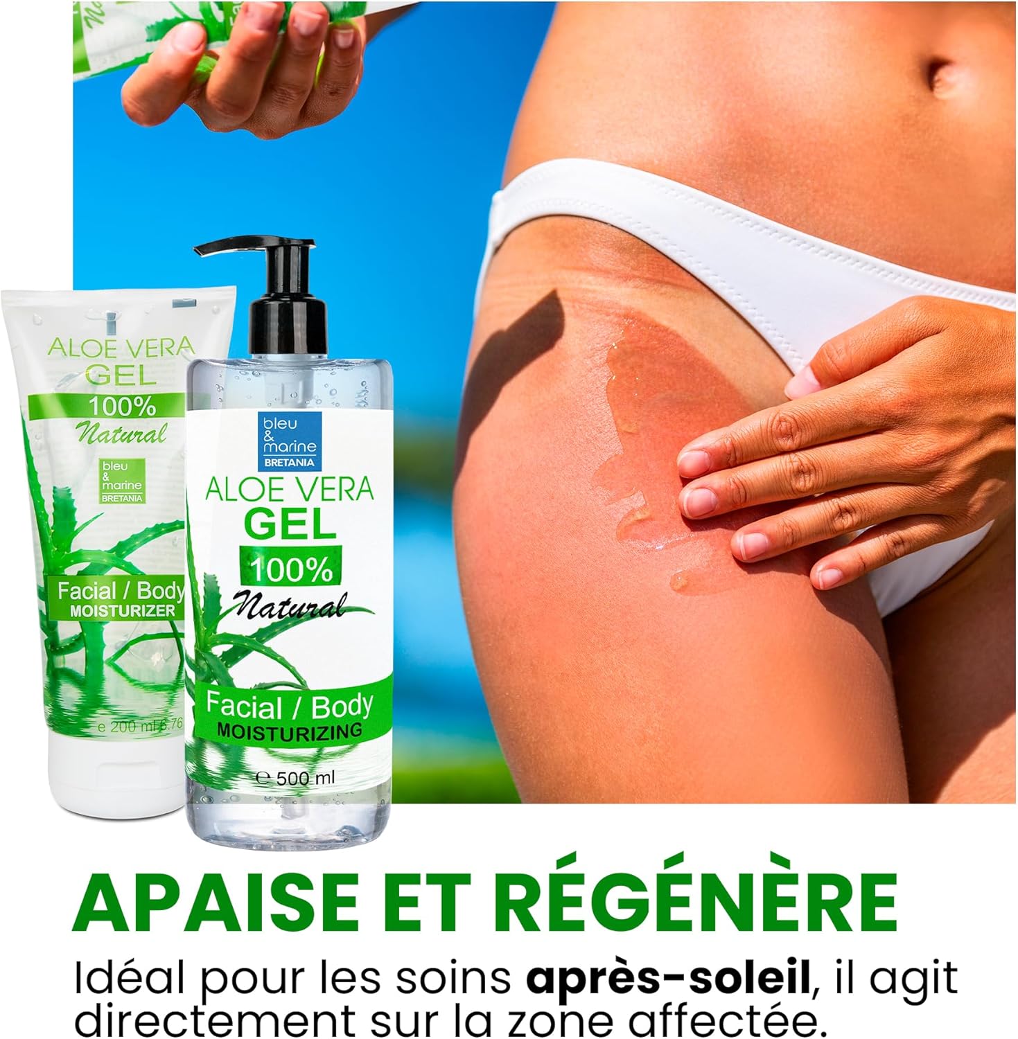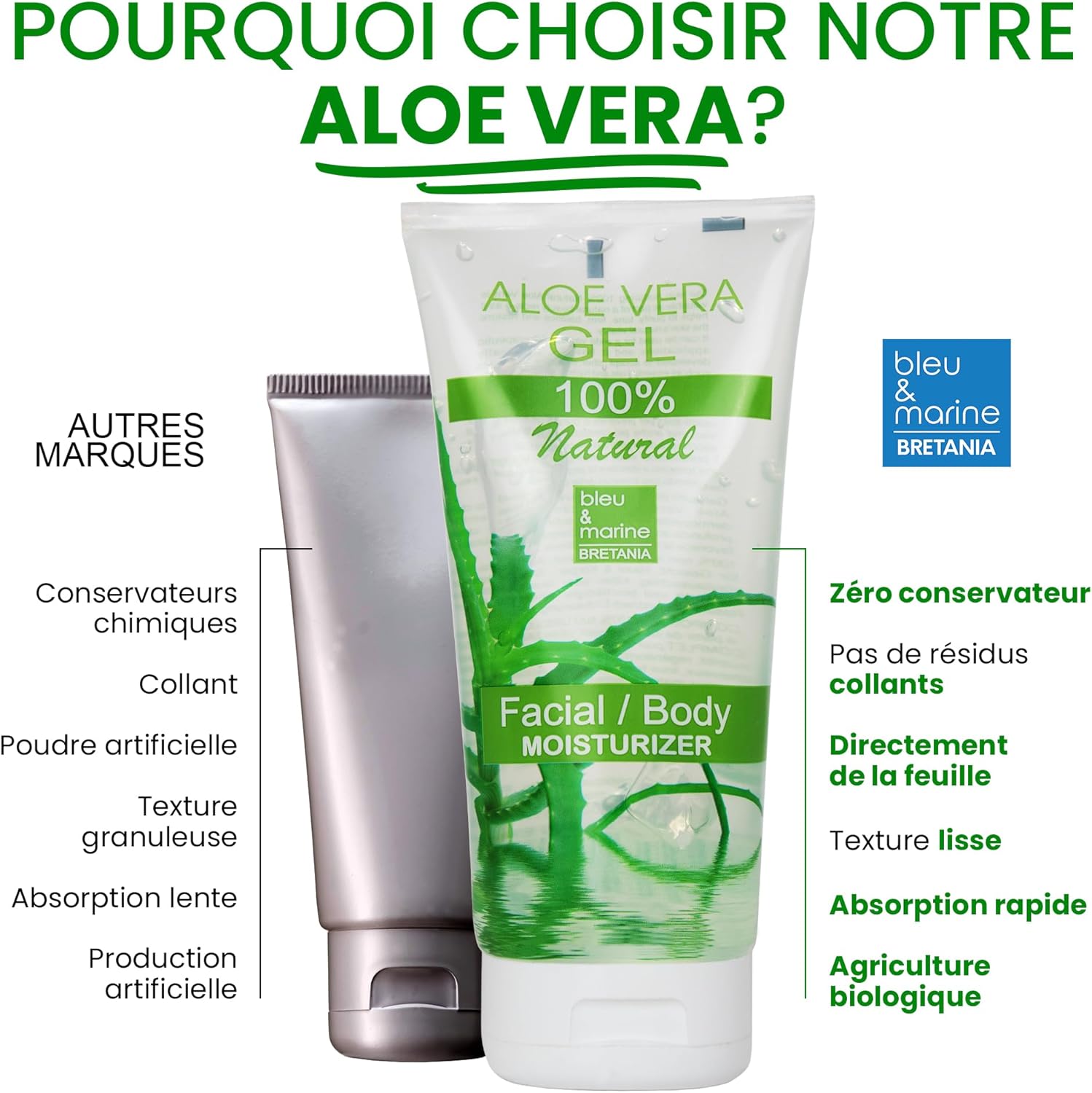 Discover deep hydration with Bretania Blue & Navy Aloe Vera Gel. Perfect for everyday use, it revitalizes and softens dry and damaged skin. A real treasure of nature for your skin!