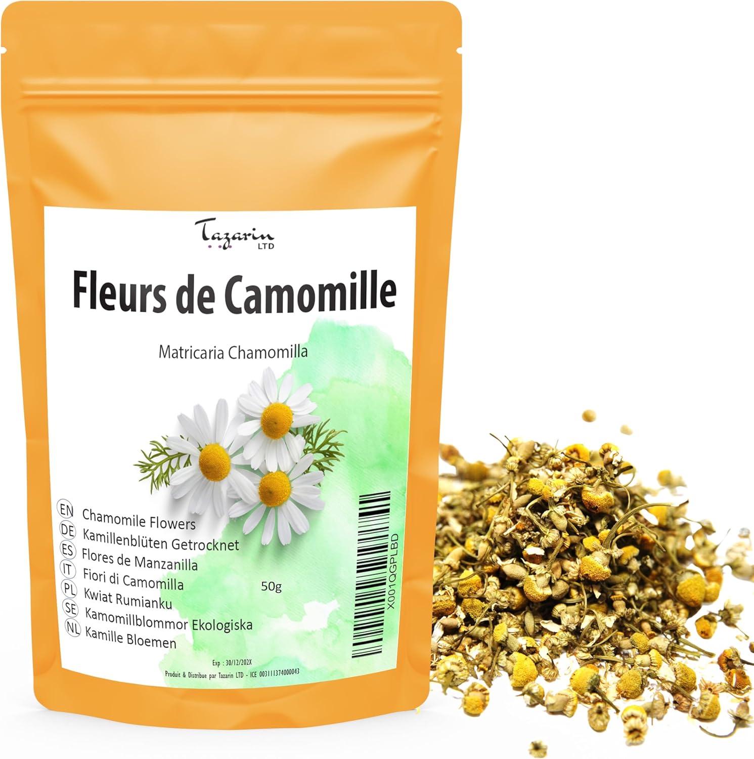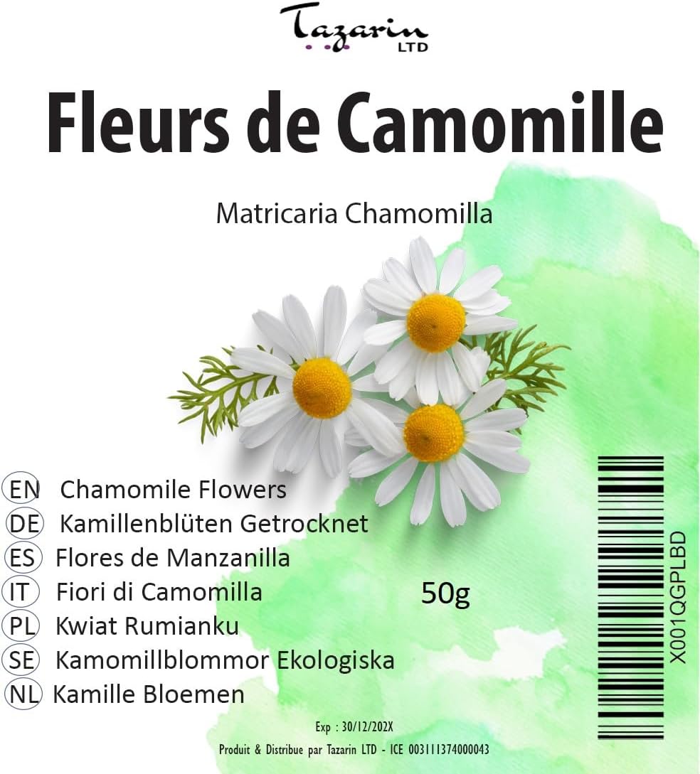 50g Chamomile Flowers – Chamomile Infusion – Matricaria Chamomilla – Intense Flavour & Taste – Bag with Zip – 100% Natural, Pure and No Additives | Top Quality – TazarinLtd