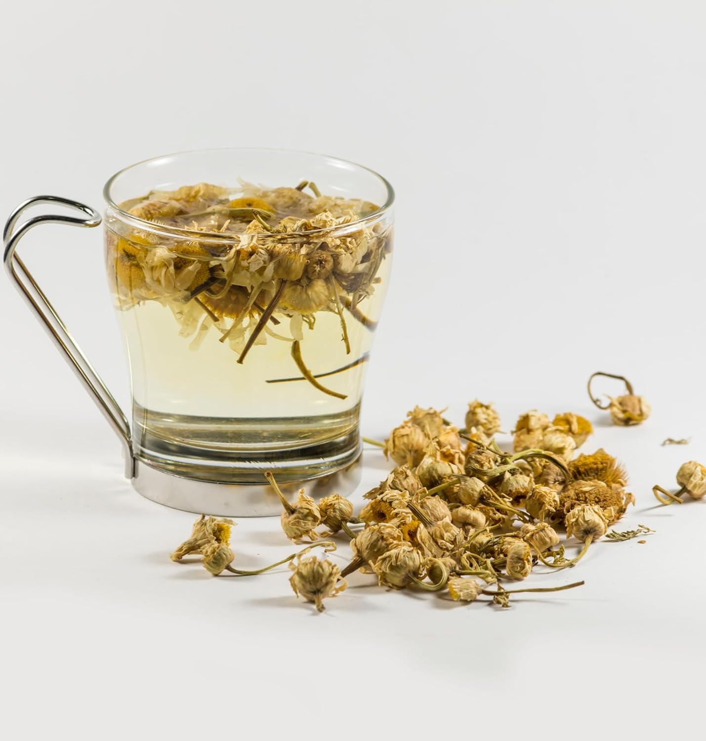 Chamomile flower infusion is a calming drink commonly consumed to promote relaxation and relieve stress. Chamomile flower herbal tea is valued for its light and floral taste, as well as for its calming effects on the nervous system. It is often consumed before bedtime to promote restful sleep and to relieve mild digestive disorders.