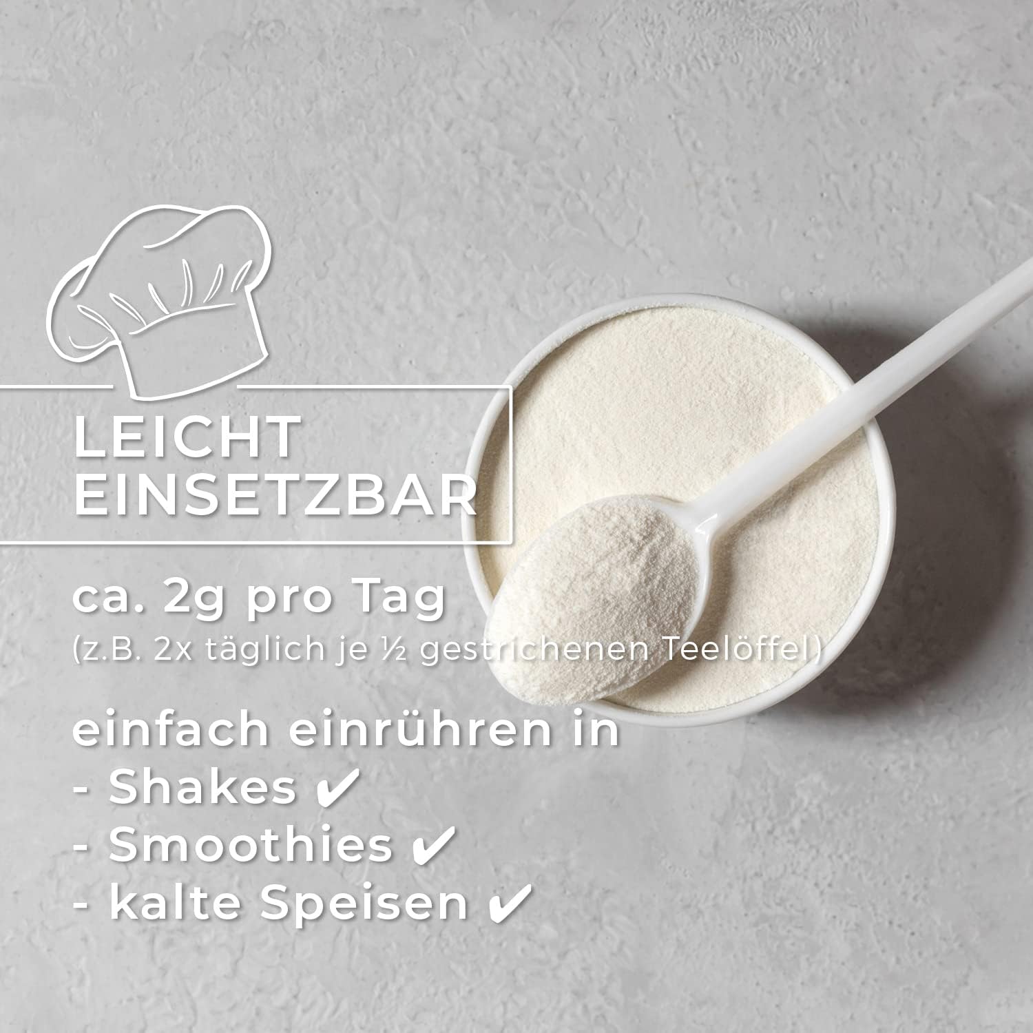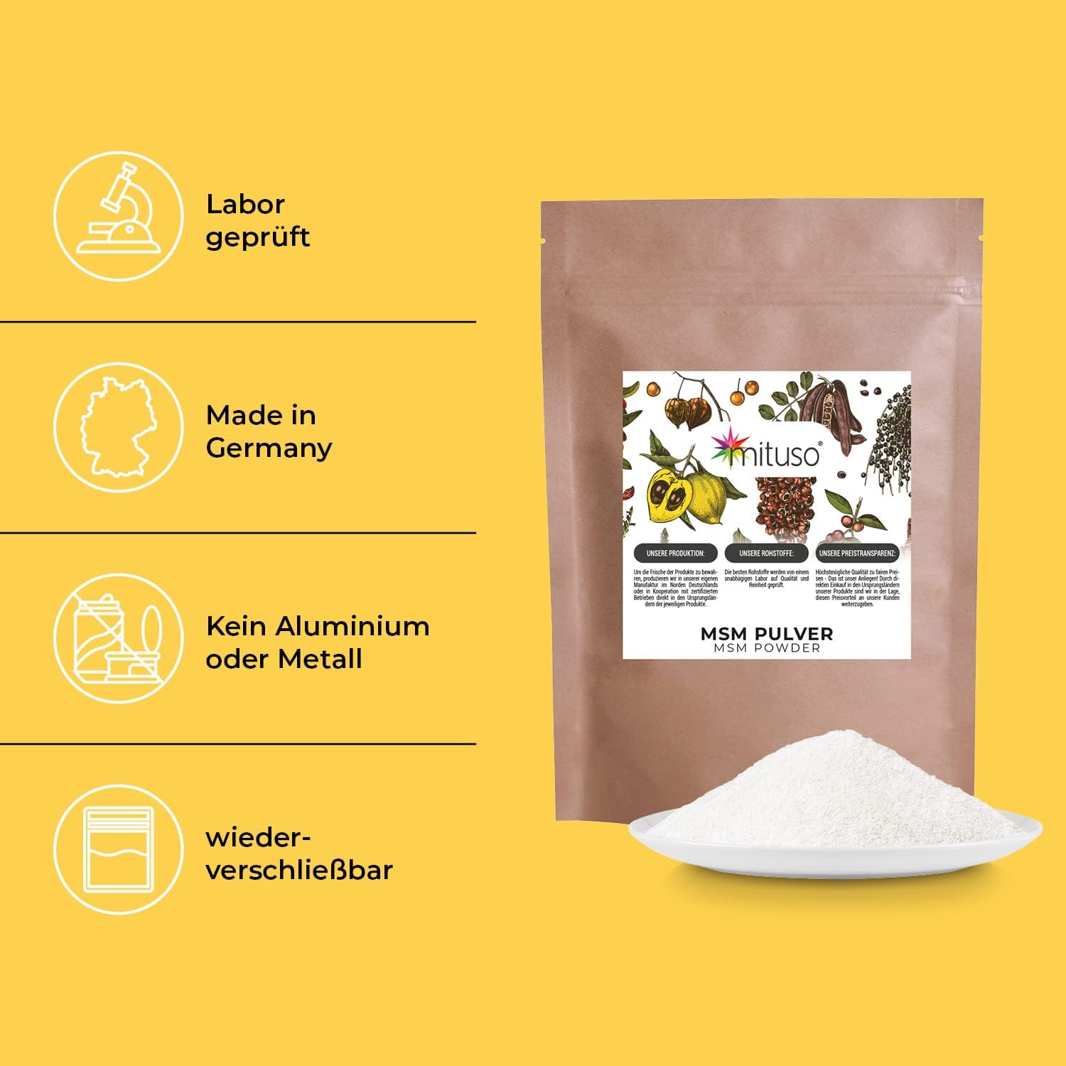 ✔ 99.9% pure MSM in powder form.