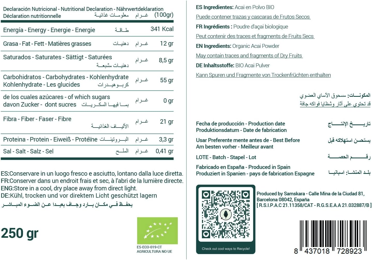 Samskara Acai Powder is sealed in a Kraft bag made with recycled materials and has a zipper so you can store it instantly. Once used, please recycle/reuse it efficiently and sustainably. Store in a cool, dry place. !💙Samskara Acai powder comes from planet Earth, to be more precise, Brazil.