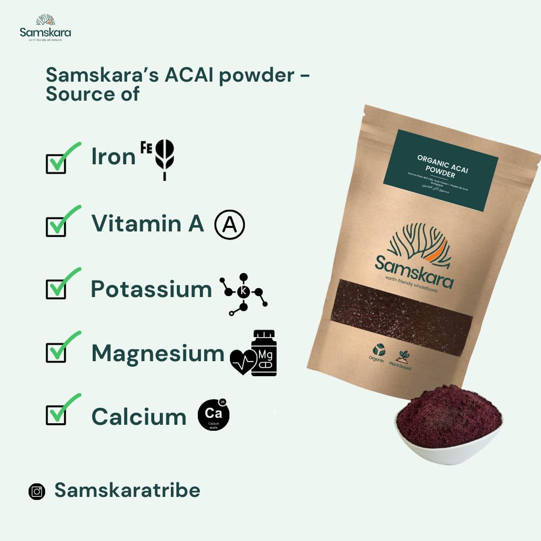 🍀Samskara Organic Acai Powder (or Acai Berry Powder) is derived from freeze-dried acai berries without chemical process, loaded with health benefits, the rich nutritional value of Acai berries is preserved in our high quality organic acai powder, anthocyanins, acai. The dark purple pigment of the berry is responsible for its antioxidant benefits s.🌹