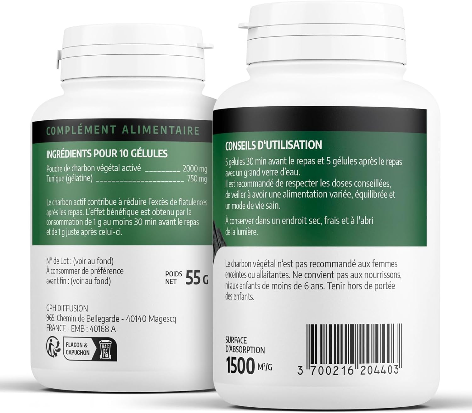 La poudre de charbon végétal est si fine qu’il est difficile de l’assimiler telle quelle. Les gélules de charbon végétal sont choisies pour leur efficacité. Elles peuvent être prises en cas de ballonnements, de gaz ou de troubles digestifs, mais il faudra toutefois faire attention au moment de la prise. Selon vos besoins, vous pouvez prendre les gélules de charbon actif 30 minutes avant de manger avec une seconde prise juste après le repas. Vous pouvez également utiliser cette supplémentation entre vos différents repas, en comptant 2 à 3 heures de complète digestion.