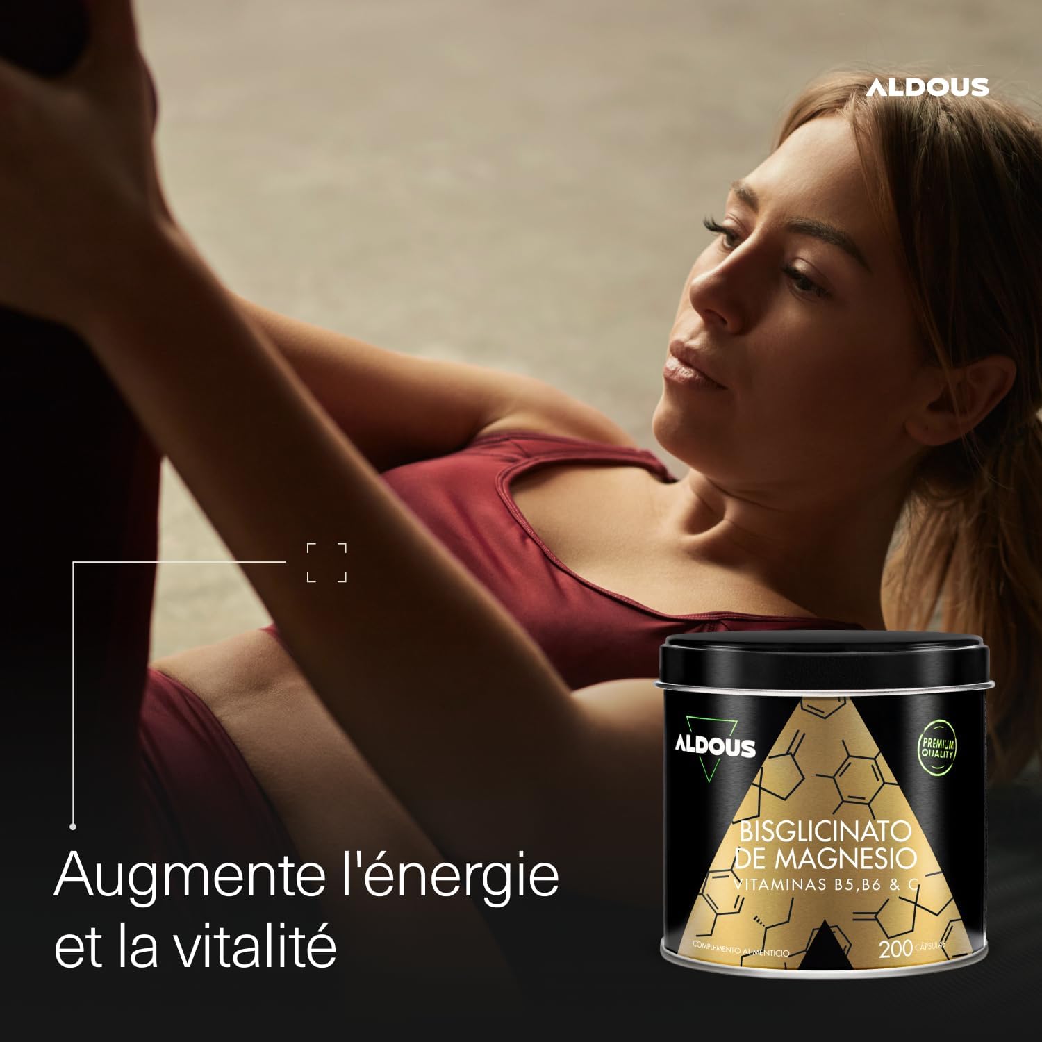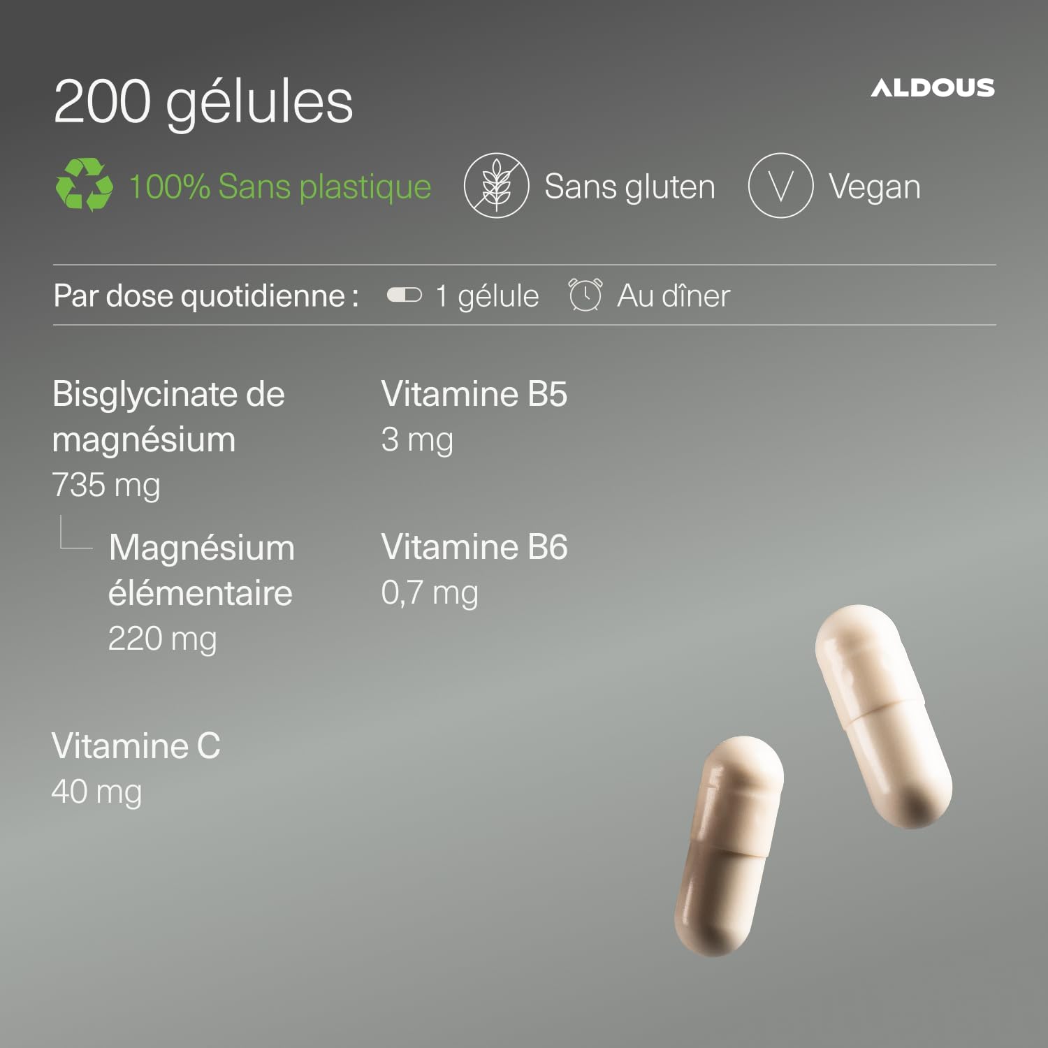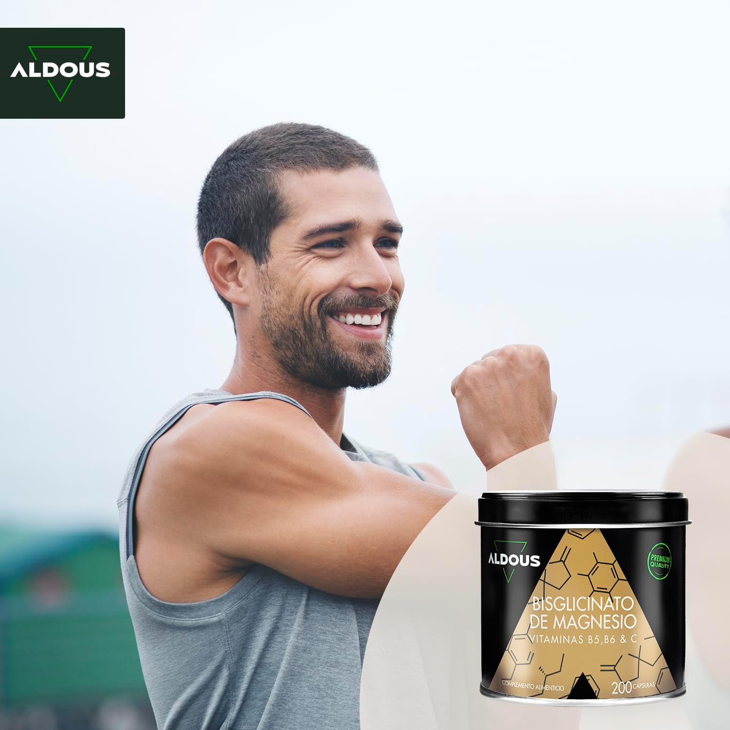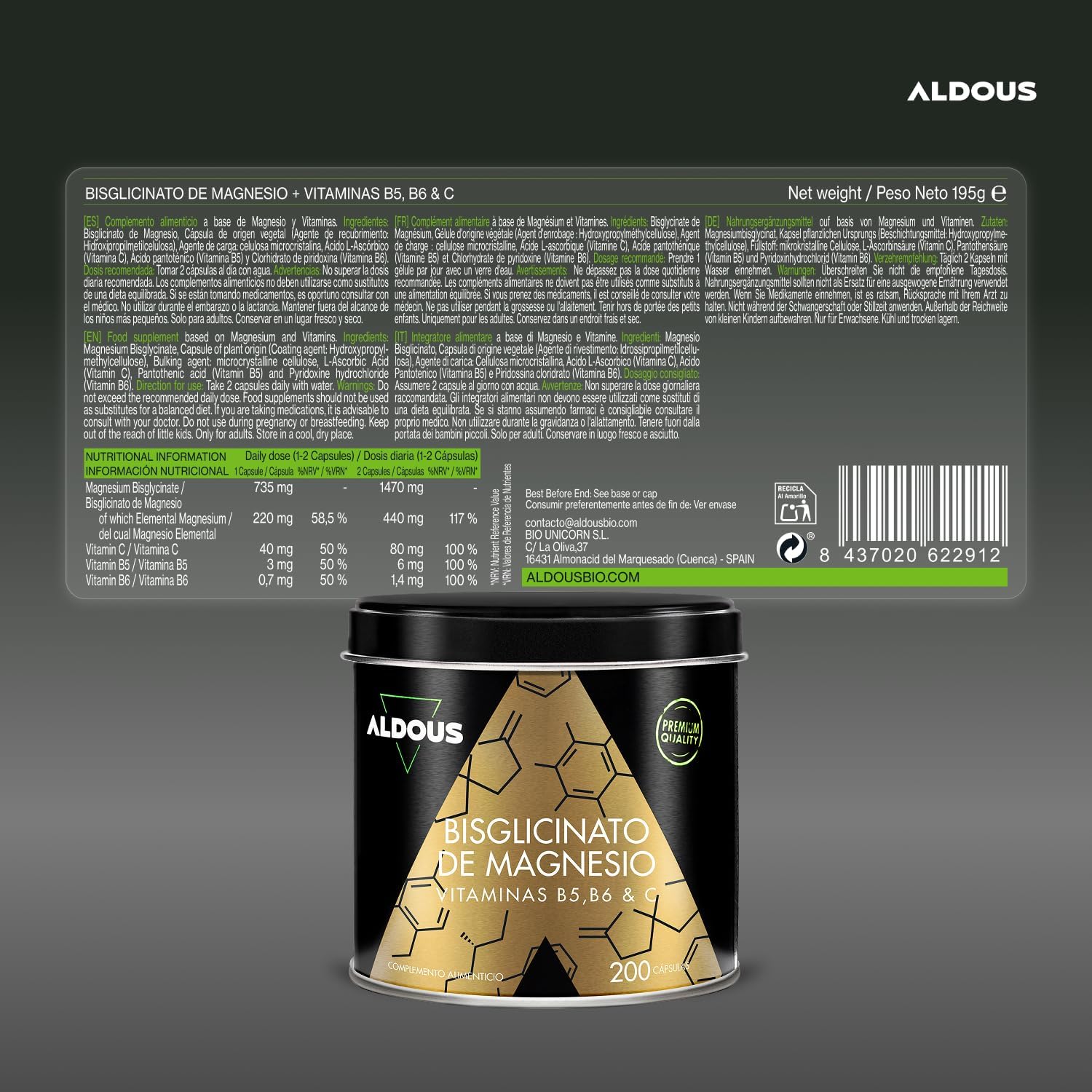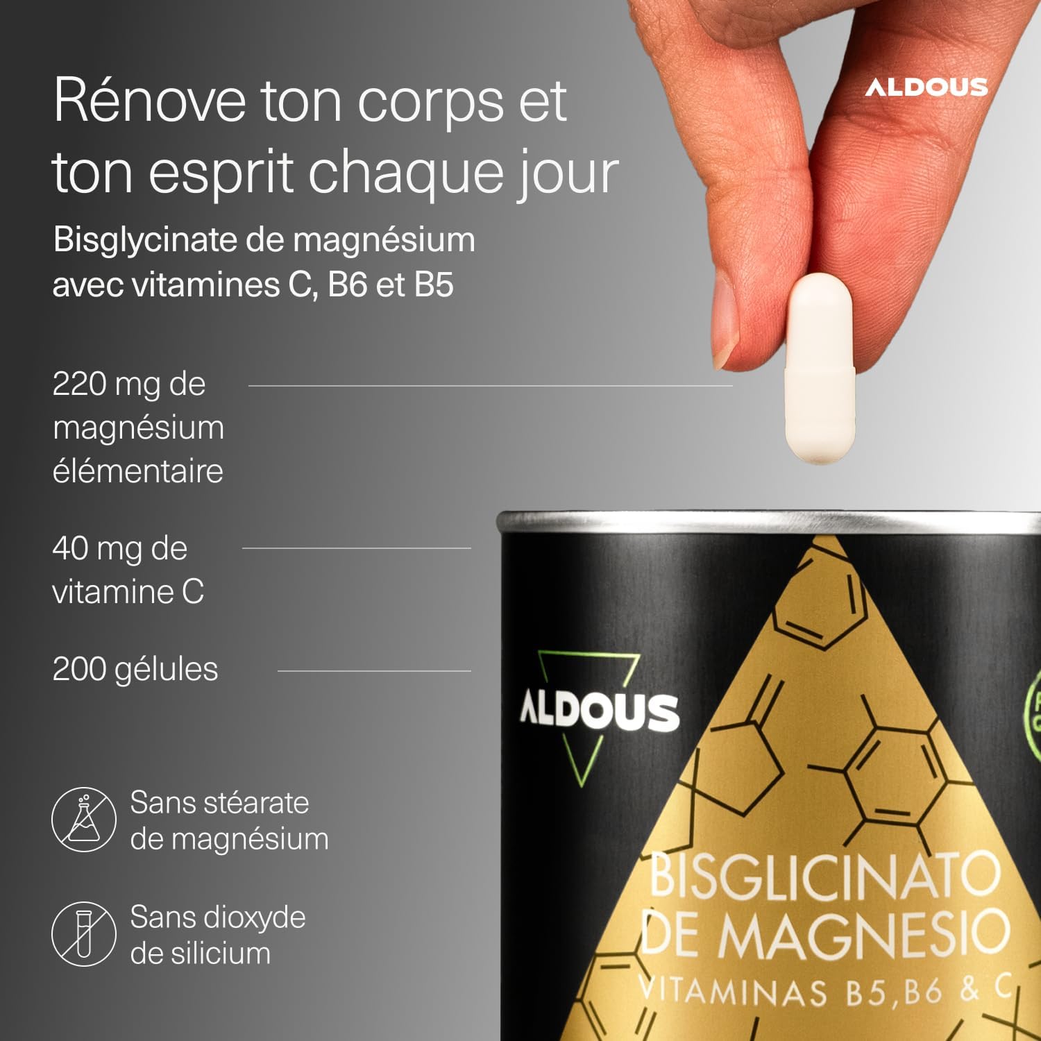 ALDOUS Magnesium Bisglycinate – 200 Capsules – Vitamin C, B6, B5 – Highly Bioavailable Magnesium – Vitamins for Fatigue – Bones & Joints Muscles