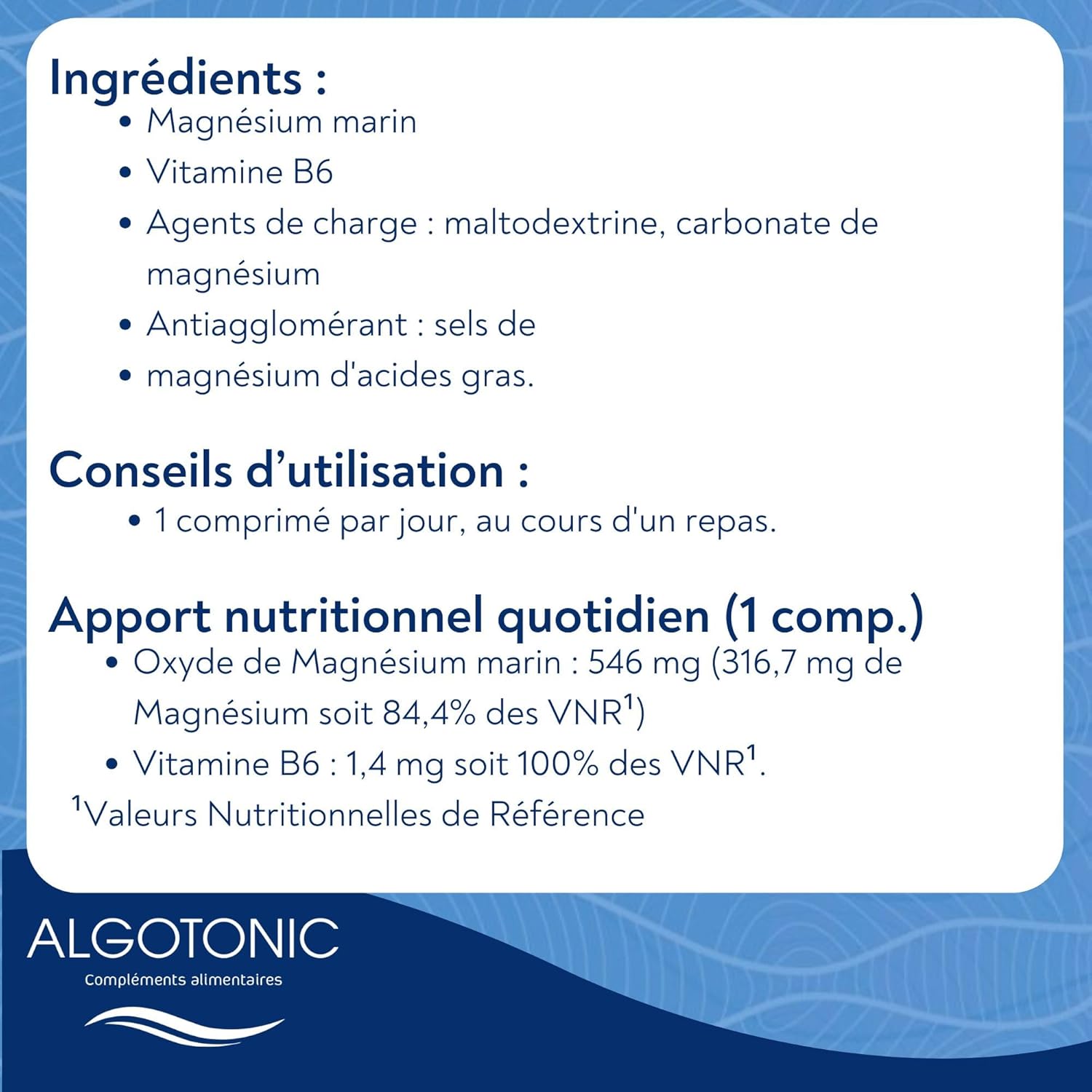 Algotonic – Marine Magnesium + Vitamin B6-546 mg/tablets – 90 Tablets – Cure 90 days – 100% natural – Vitality – Strengthens the nervous system – Stress – Reduces fatigue
