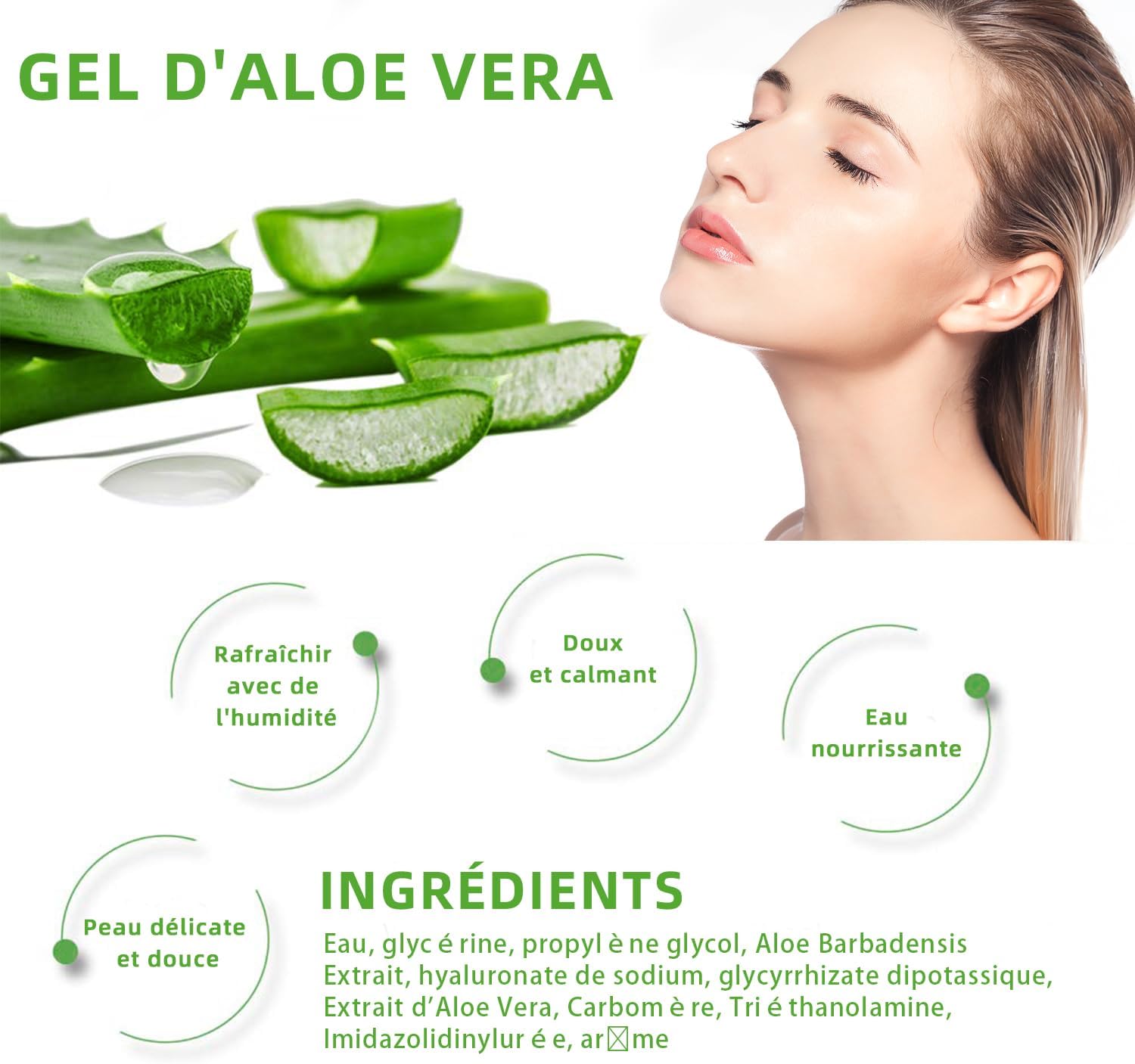 【Natural Aloe Vera Gel】Our aloe vera gel is a product extracted from the natural aloe vera plant and is 100% natural, 99% pure aloe vera juice and does not contain harmful chemicals, dyes or alcohol; A variety of soothing and protective nutrients to regenerate skin cells, beneficial to skin, body and hair