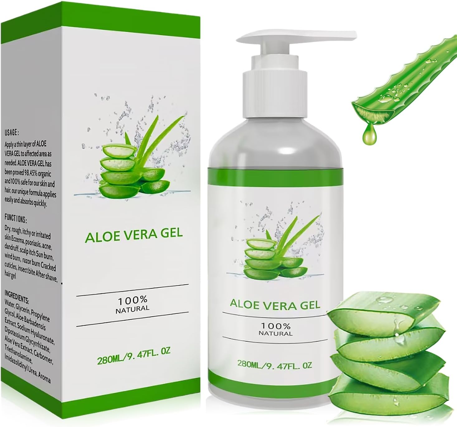 Aloe Vera Gel 100% – 280ml Pure Organic Aloe Vera Gel, Naturally Soothing, Nourishing and Moisturizing, Aloe Vera Hydration for Face, Hair and Body