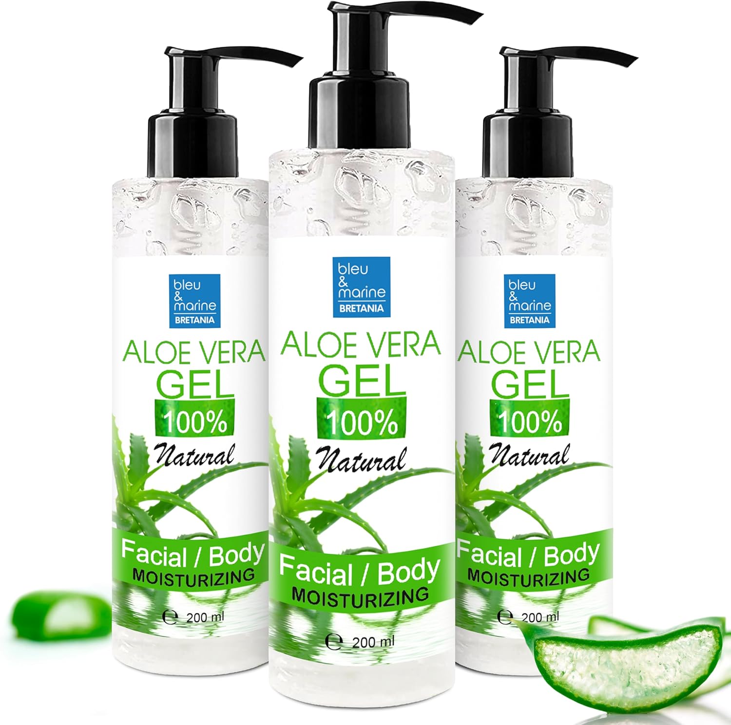 Aloe Vera Gel 100% Natural, Firming Body, Anti Wrinkle Face, Moisturizing Skin and Hair, Soothing and Repairing Hair (After Sun, After Shaving and Hair Removal) – 3 x 200 ml