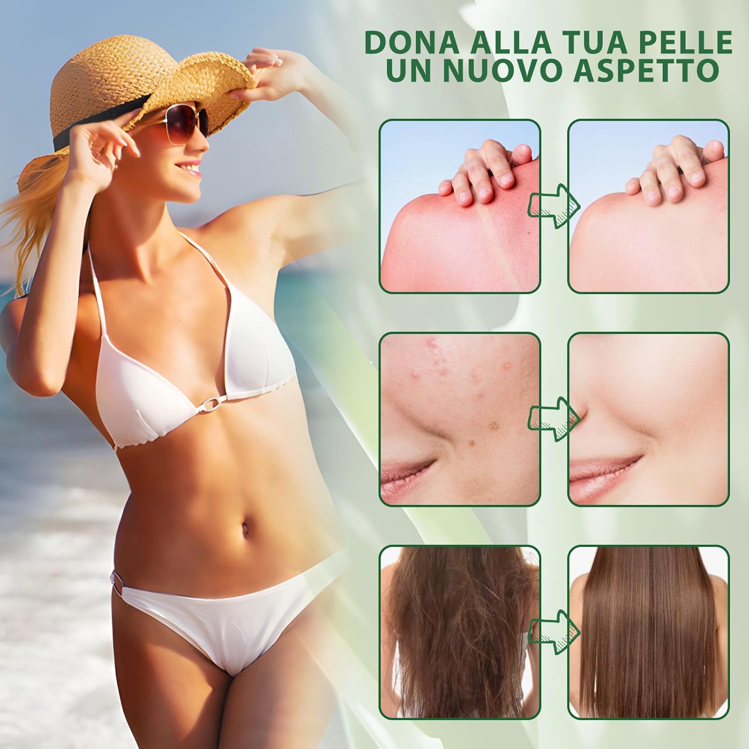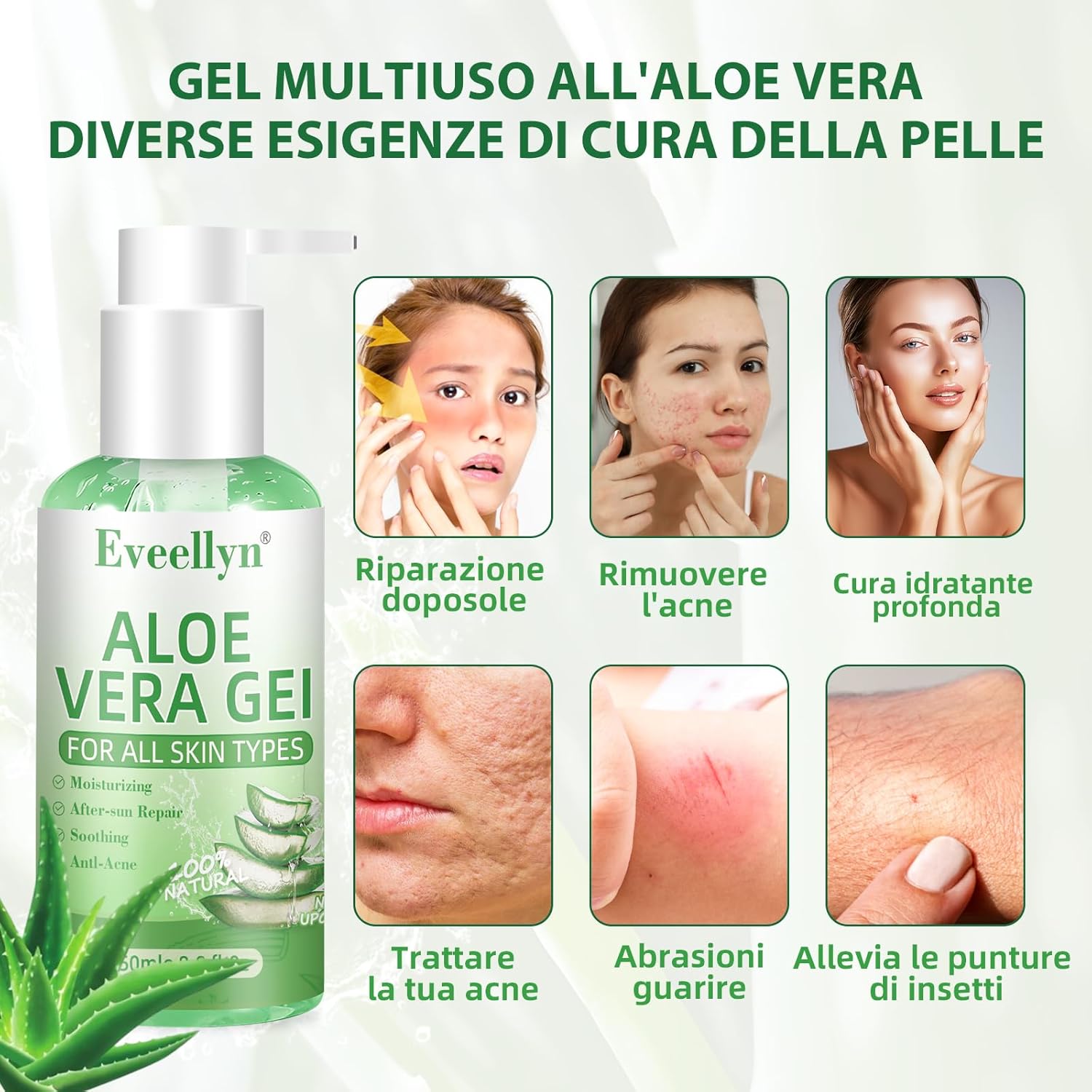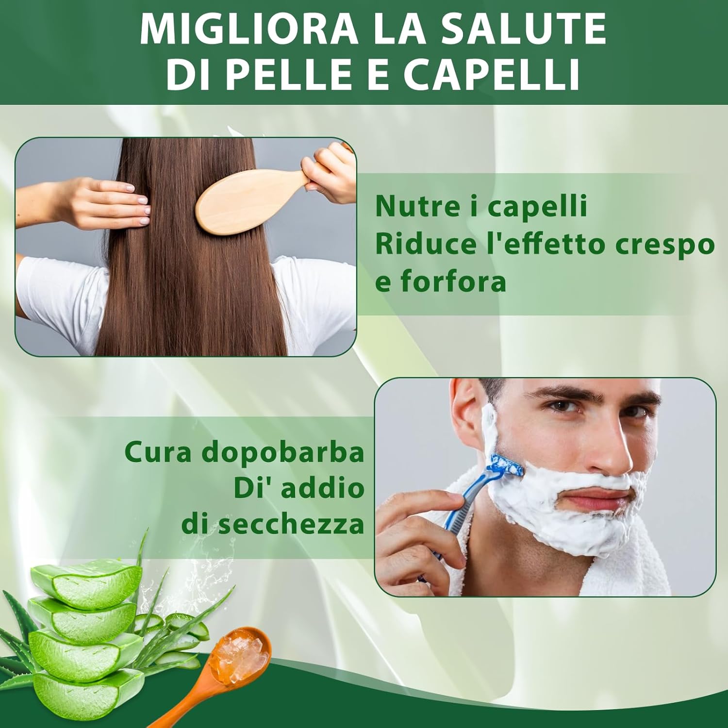 Versatile use: our 100% aloe vera gel for face, hair and body, with its dual moisturizing effect and strong restorative force, helps relieve redness or rashes, heals small cuts and abrasions, relieves itching after insect bites, improves skin and prevents fine lines, also promotes healthy hair growth