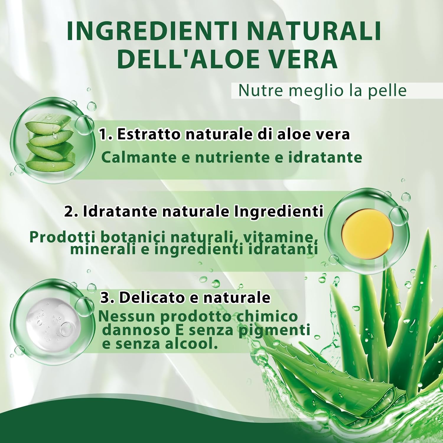 MOISTURIZING & SOOTHING – Aloe Vera It contains many of the plant’s natural compounds, including vitamins, minerals… which are quickly absorbed, nourishing and moisturizing without leaving a sticky sensation or residue, excellent in hydration. Use it daily for healthier, younger looking skin