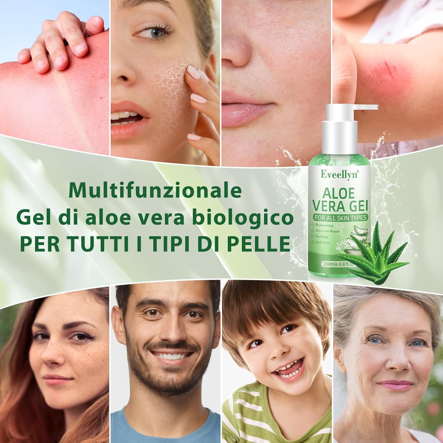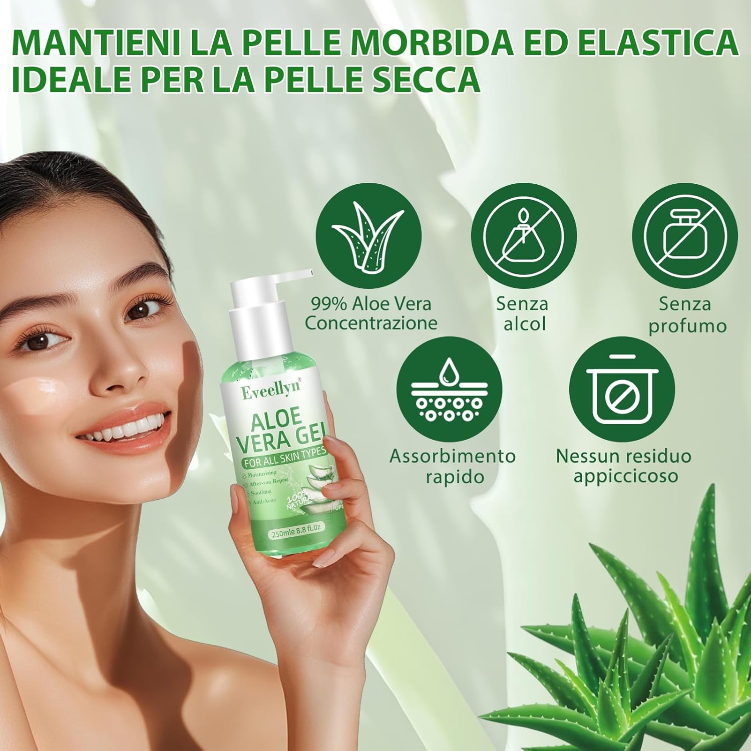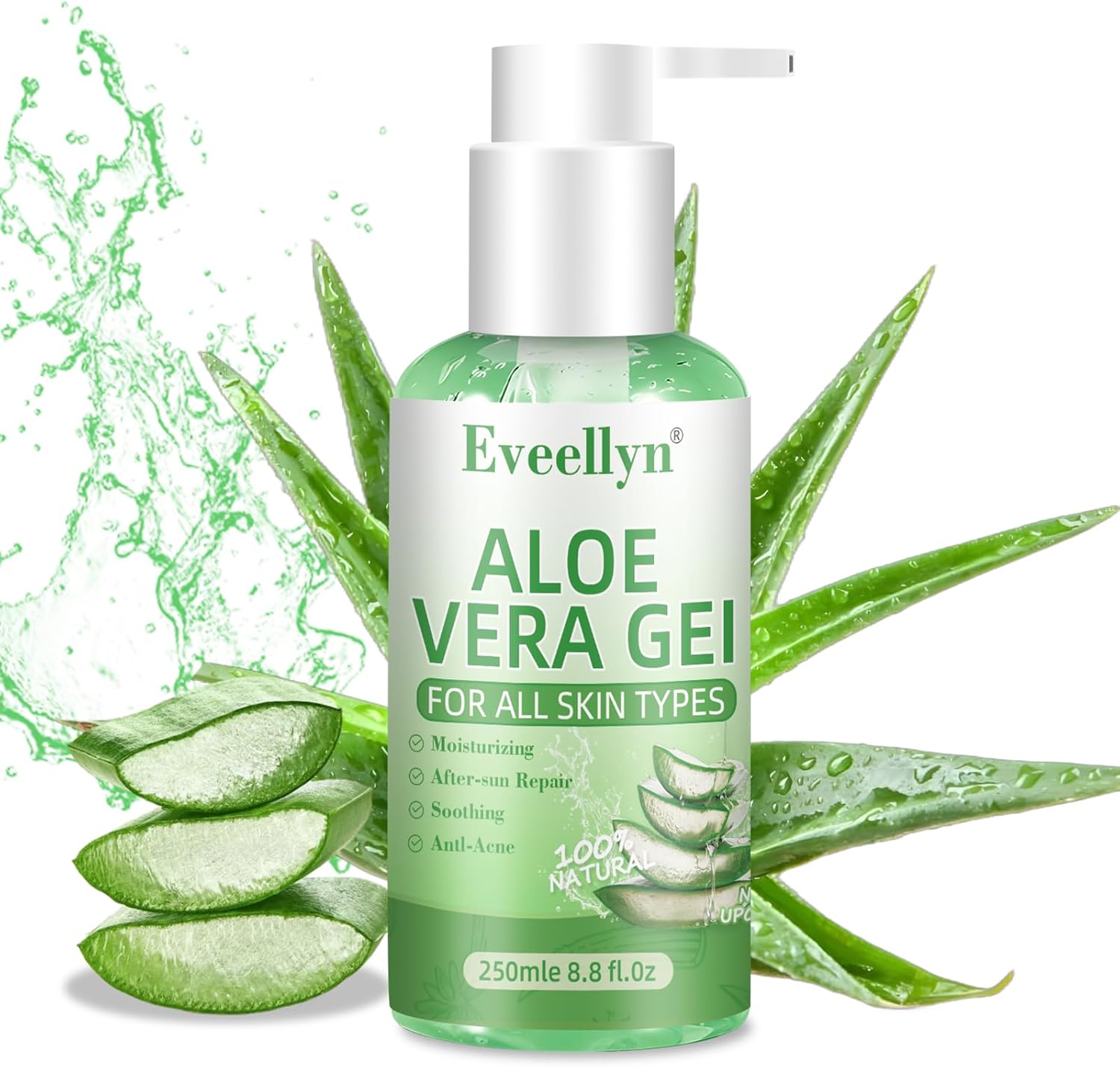 Aloe Vera Gel 100% Pure Face & Body Gel, Natural Soothing, Nourishing Moisturizing Cream for Dry & Sensitive Skin, After Sun & Aftershave (250ml)