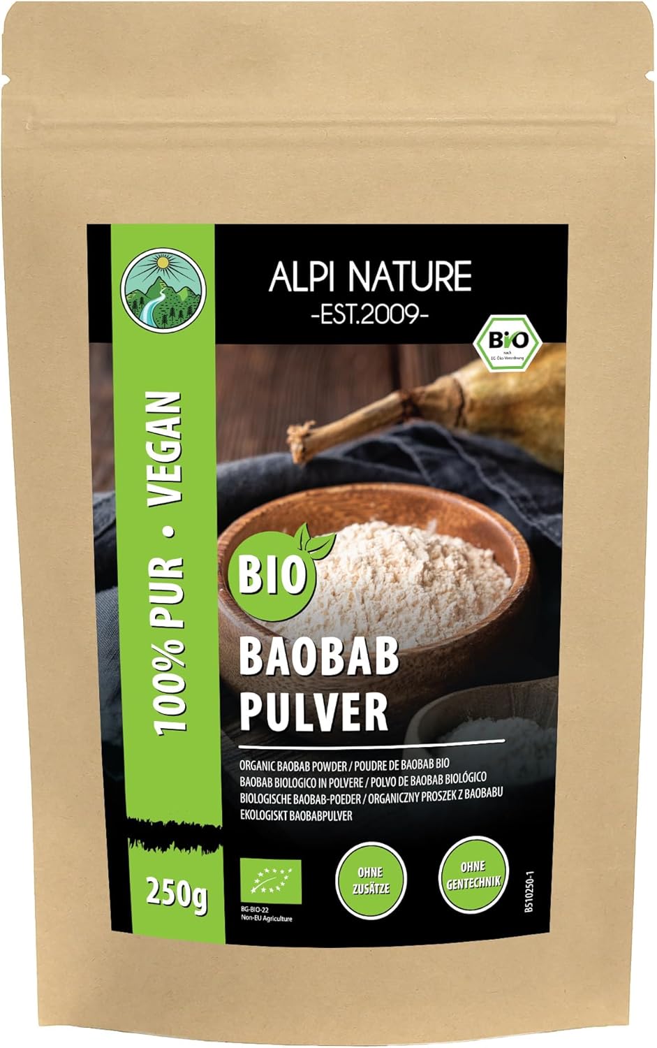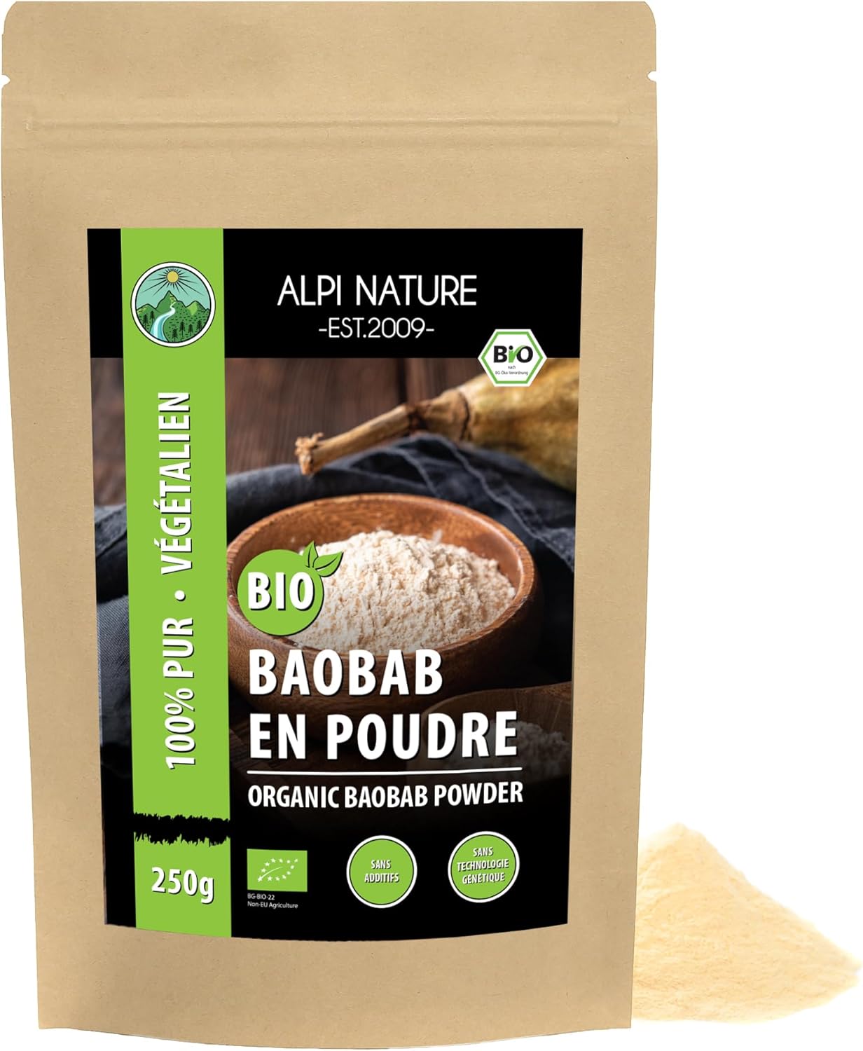 Alpi Nature Organic Baobab Powder 250 g, Dried and Ground Baobab Fruit, Gluten Free Powder