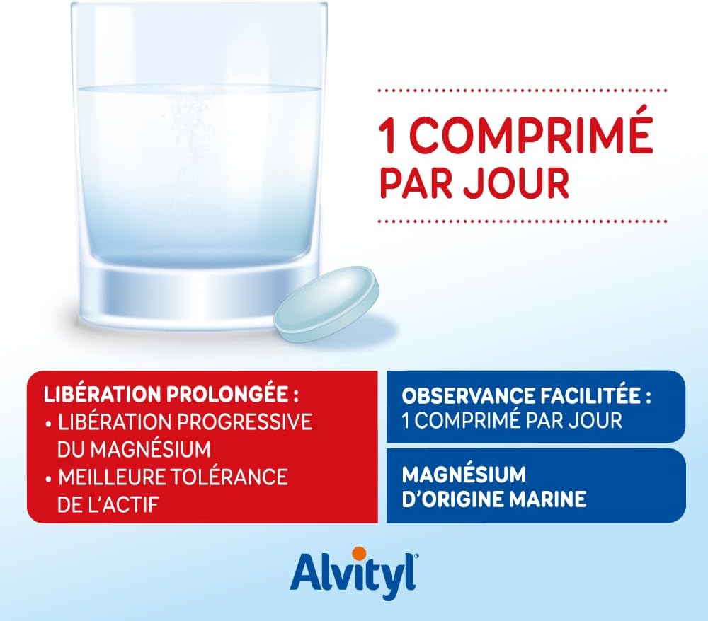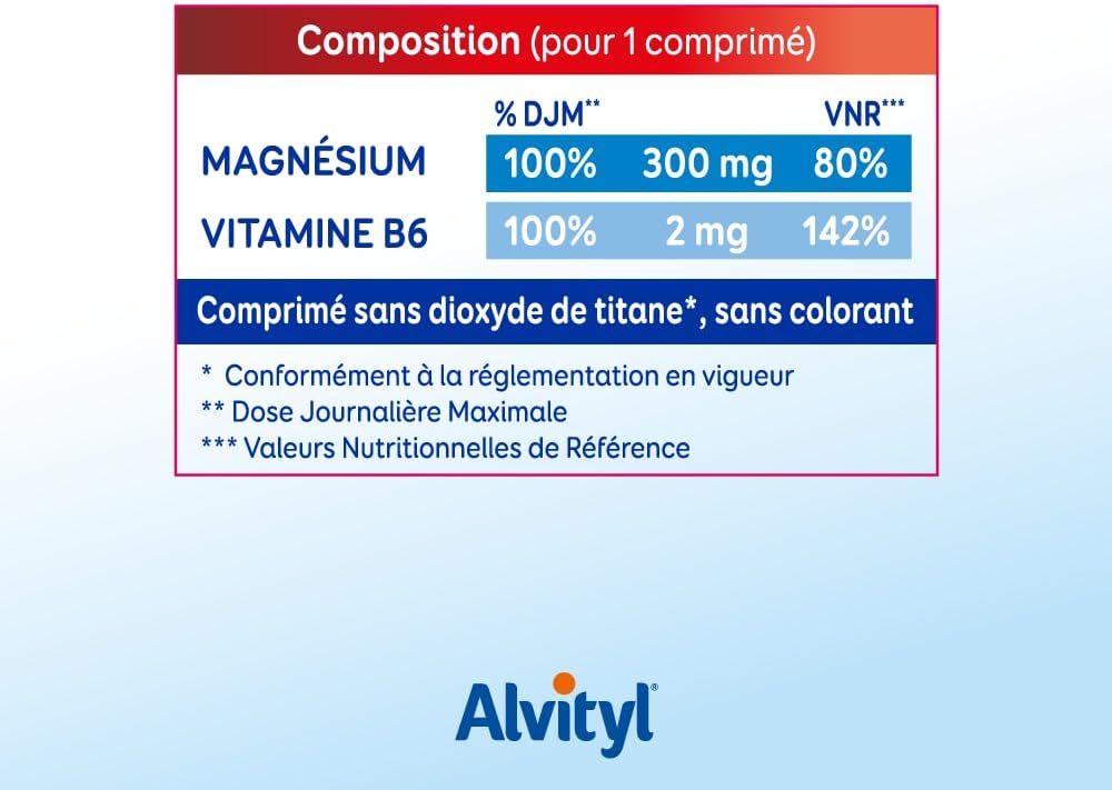 Alvityl Magnesium Vitamin B6 Extended release, it is the assurance of having daily quantity of magnesium and vitamin B6 that your body may need. For more than 50 years, the Alvityl brand has embodied French know-how and professional expertise in multivitamin supplements.