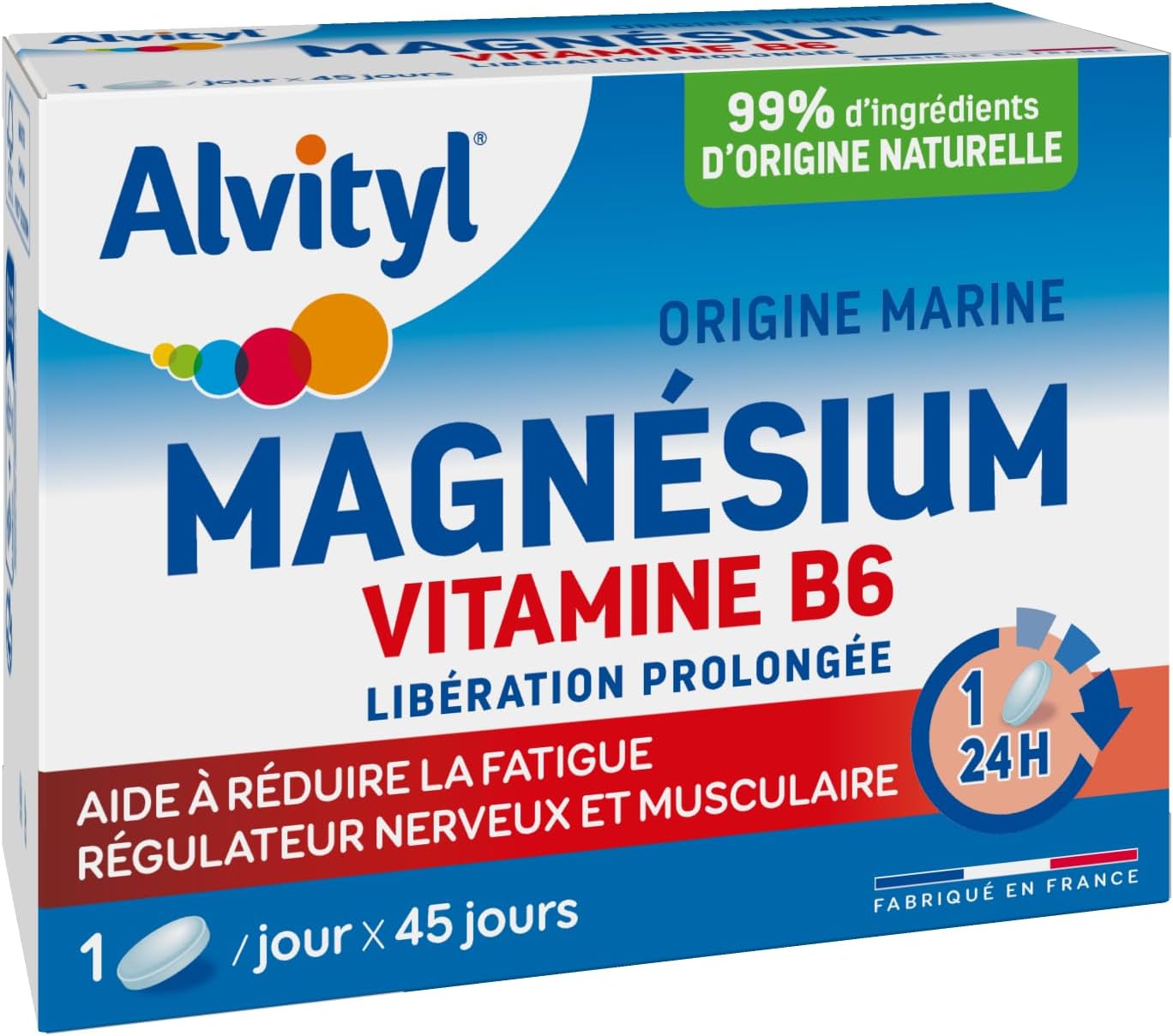 Alvityl Magnesium 300mg + Vitamin B6 – Prolonged Release – Slow and Progressive Diffusion – Magnesium of Marine Origin – Stress, Fatigue, Irritability – Made in France – Tablets 45 days