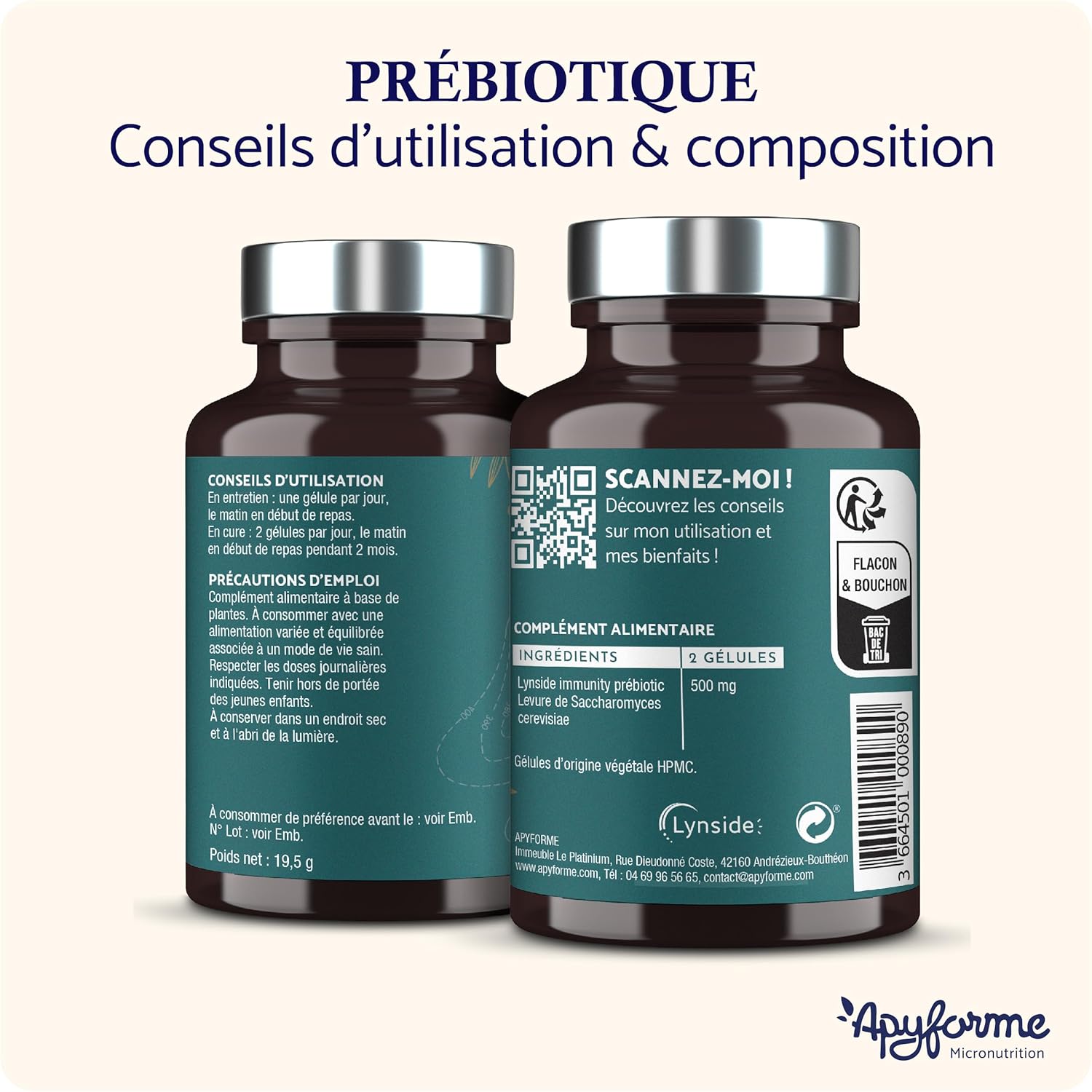 Apyforme – Prebiotic Intestinal Flora – Microbiota Immunity and Balance – Unique Prebiotic Yeast – 60 Capsules – Vegan – Made in France