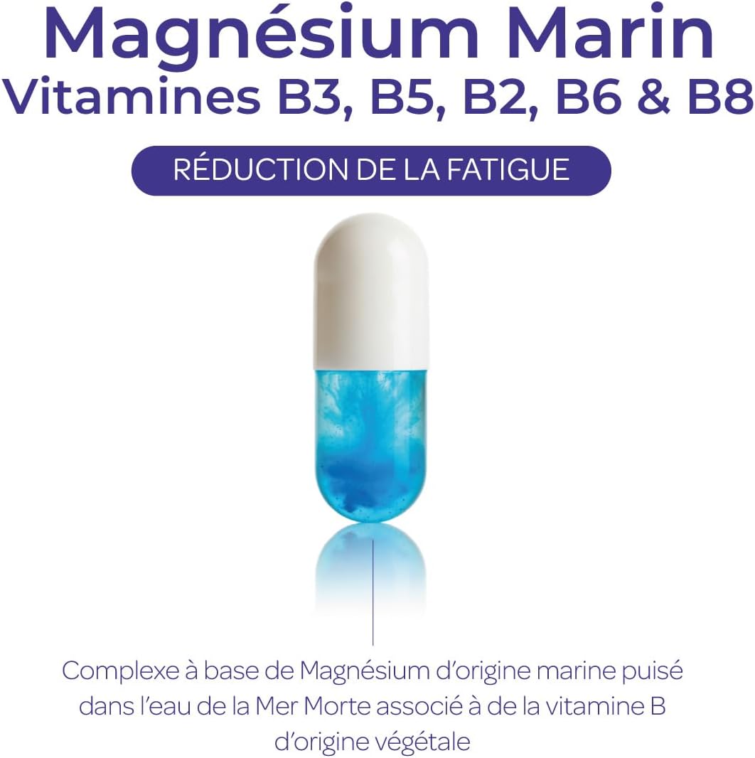 Aquamag Marine Magnesium Vitamin B3, B5, B2, B6 and B8 – Reduce Fatigue – Made in France – 80 Capsules