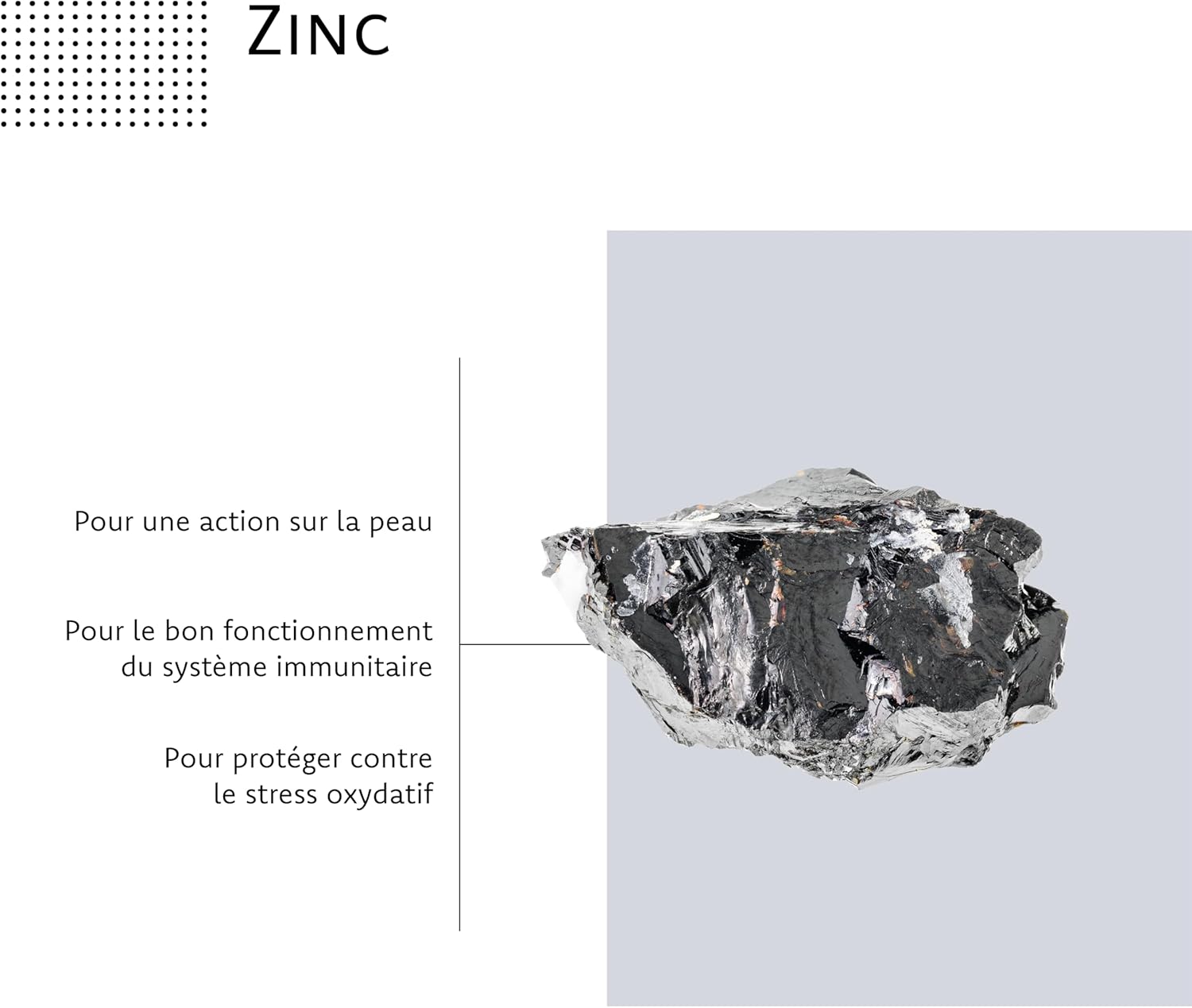 ZINC, A KEY ACTIVE: Zinc is a trace element present in a small proportion in our body. Nevertheless, it has an essential role: stimulation of immune defenses, protection against cellular aging, maintaining the quality of the skin, nails and hair. Combined with two vitamins, including vitamin B6, these two highly assimilable forms of Zinc (picolinate and bisglycinate) allow our formula to strengthen your immune system.