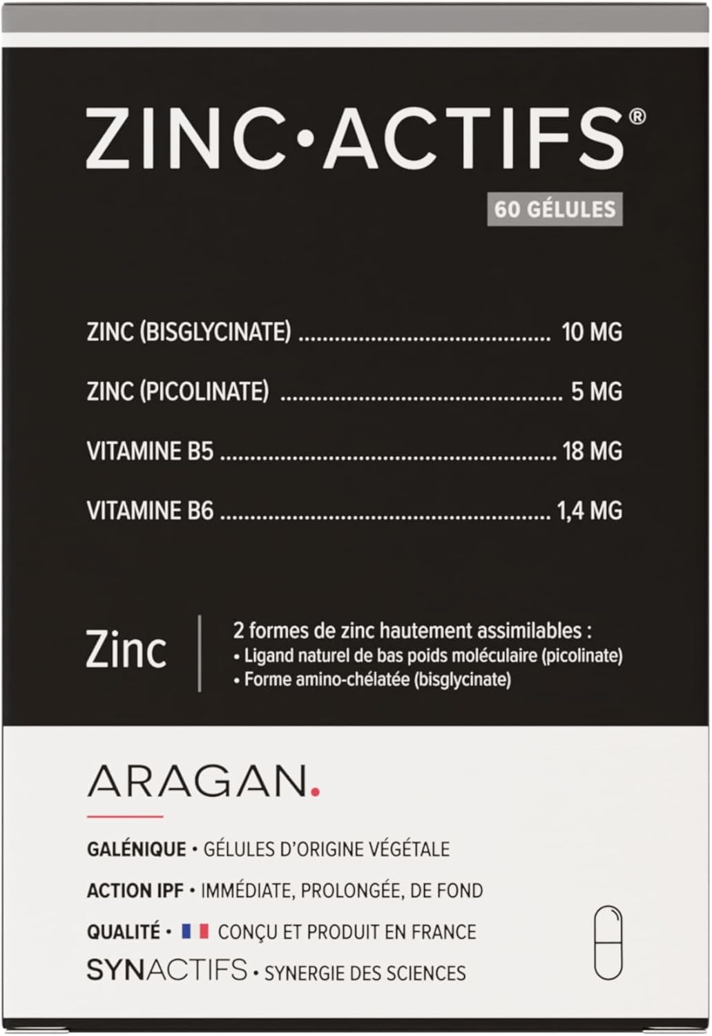 ARAGAN – Synactives – Zincactives – Immunity and Skin Supplement – Zinc, Vitamins B5 and B6 – 60 capsules – 1 month taken – Made in France