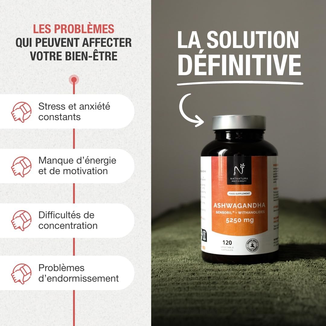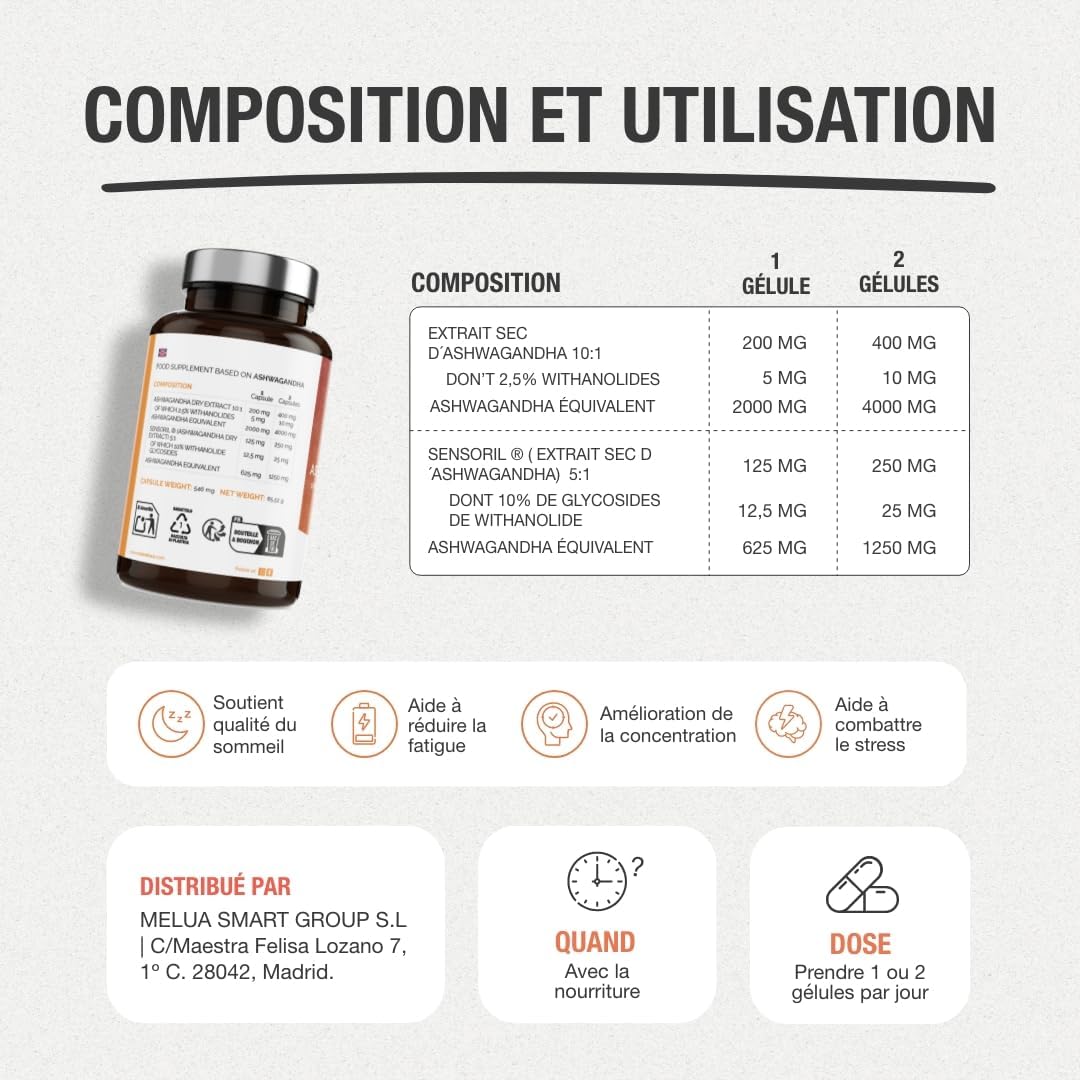 ✅ ASHWAGANDHA IN ITS MOST POWERFUL AND EFFECTIVE FORM | Our formula combines two premium Ashwagandha extracts: a 10:1 extract with 5% withanolides (equivalent to 2000 mg root powder per capsule) and Sensoril 5:1 with 10% withanolidal glycosides es. In just 2 capsules, you get 5250mg of root powder, a potency and effectiveness that few other formulas can match.