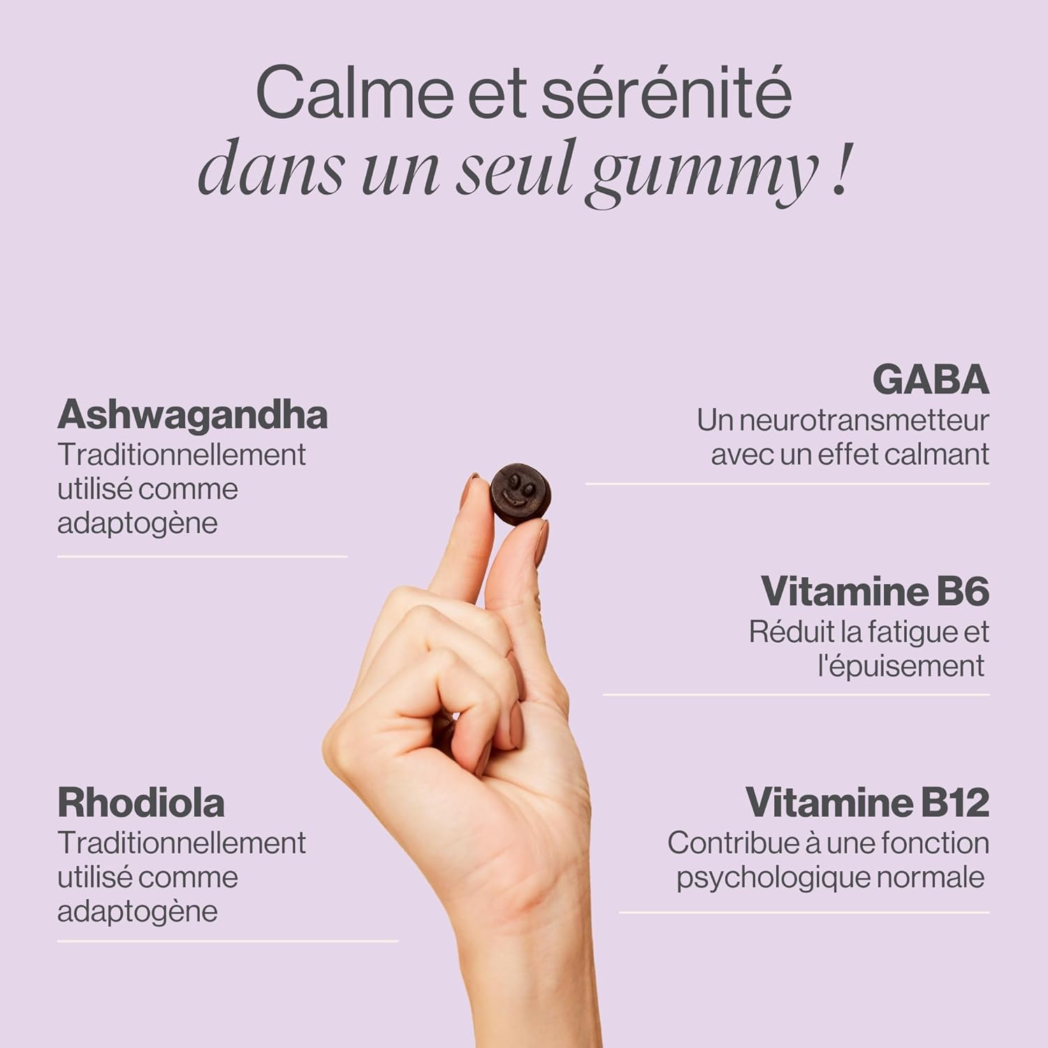 Cortisol reducing supplement to lower stress levels. Thanks to the calming power of ashwagandha, rhodiola and essential vitamins B6 and B12, these delicious gummies work harmoniously to nourish the body and mind.