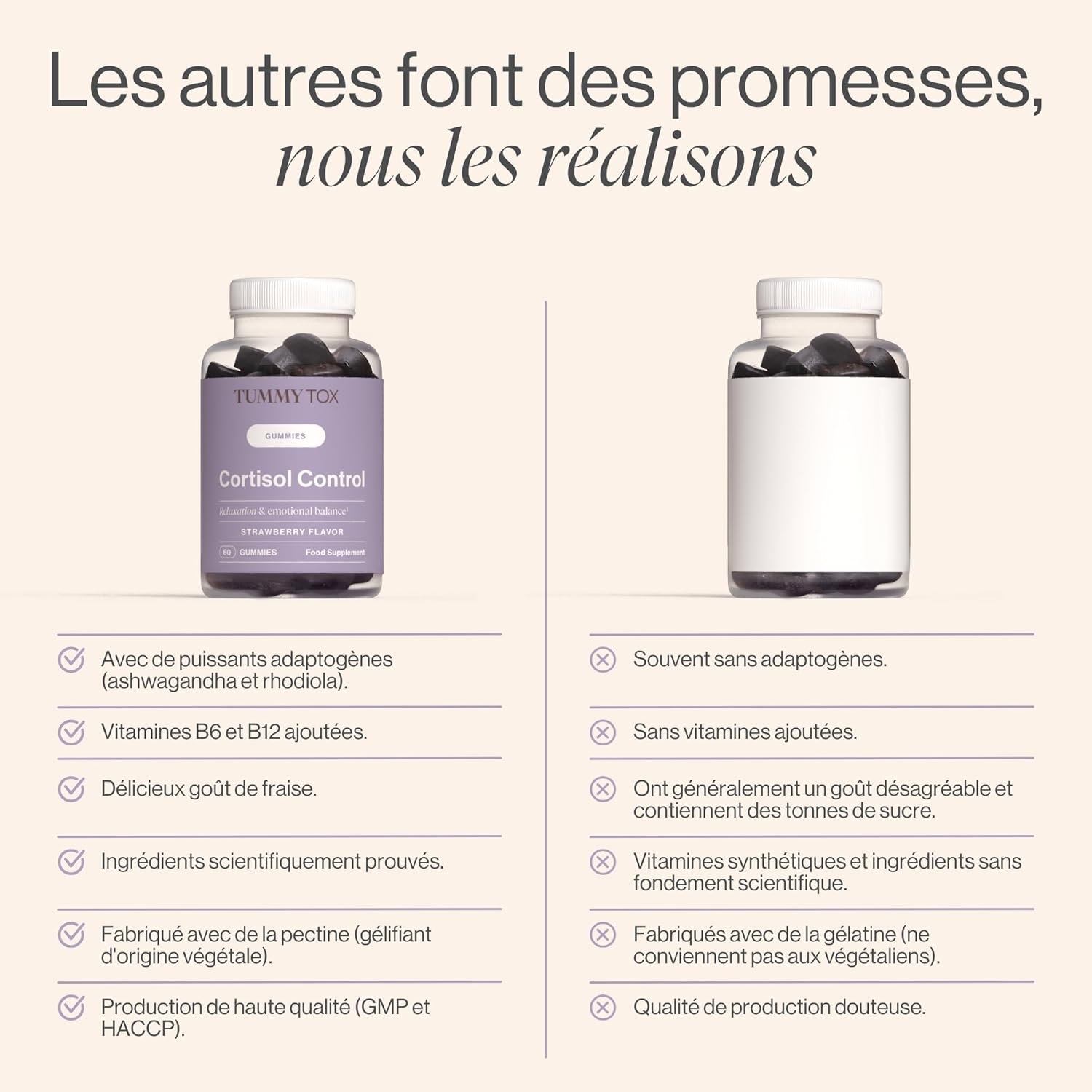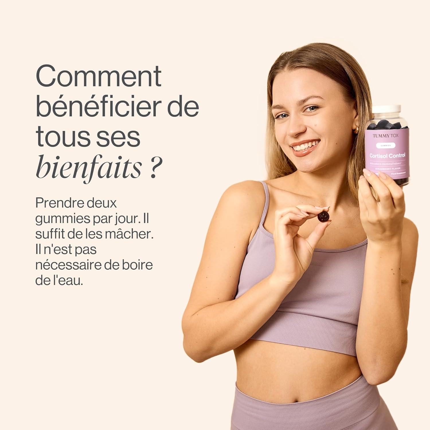 Supports healthy cortisol levels with 100% natural gummies. Take 2 gummies per day. Just chew them. No need for water.