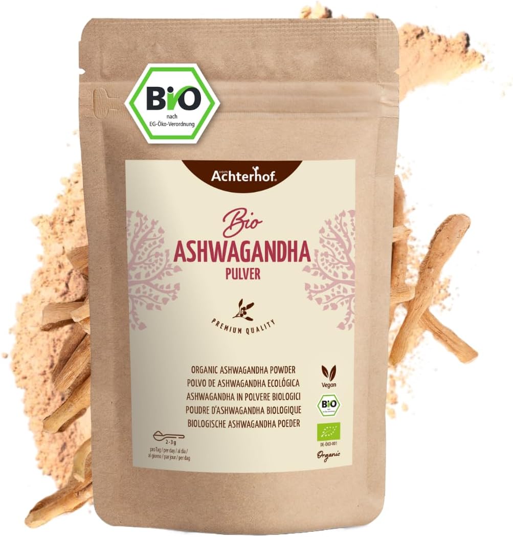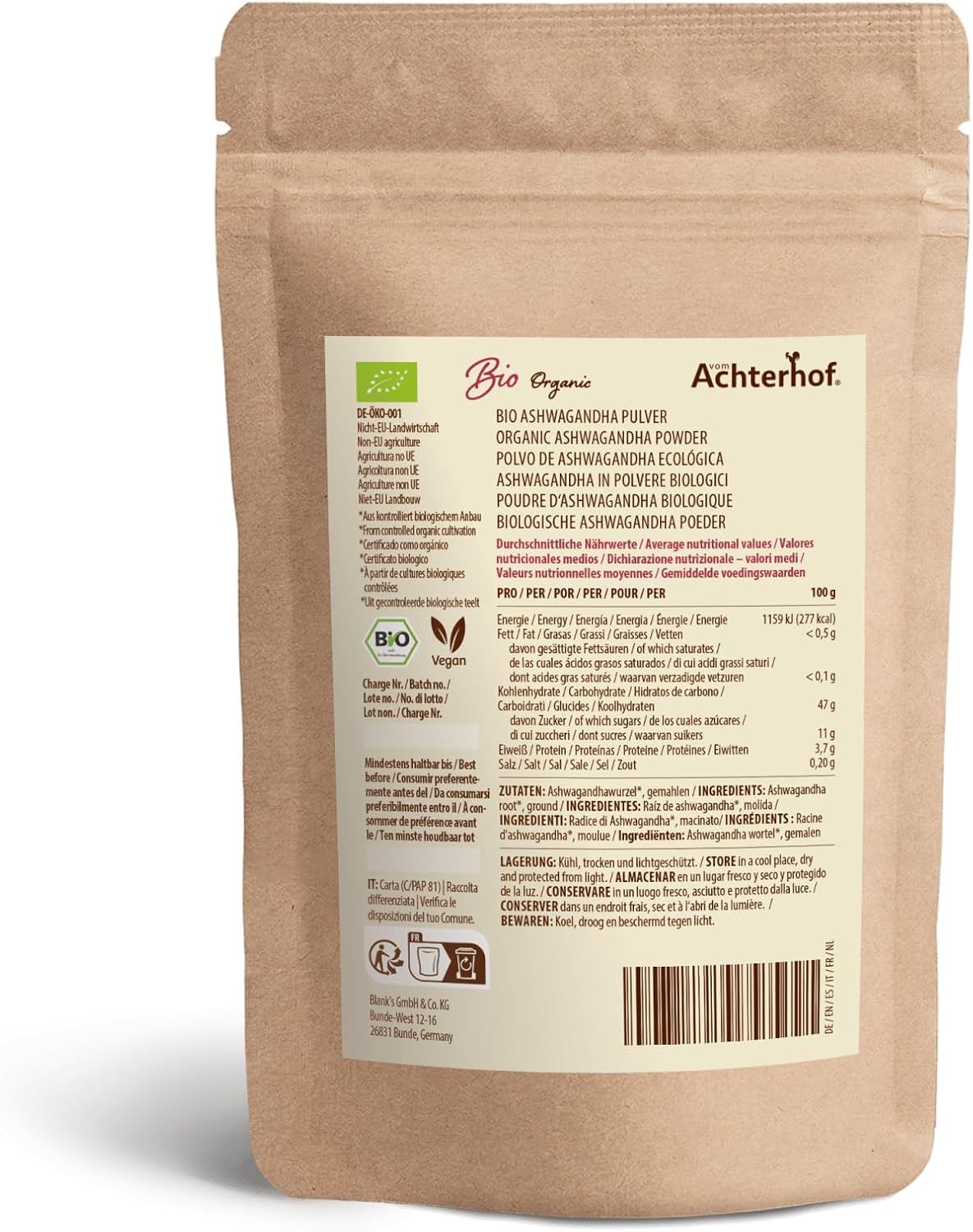 Ashwagandha Organic Powder 500g | Real Ground Ashwagandha Root from India | Indian Ginseng | Ayurveda | Ideal for Adding to Smoothies, Juices & Golden Milk | vom Achterhof