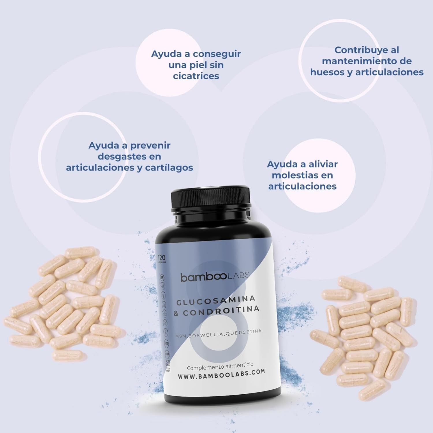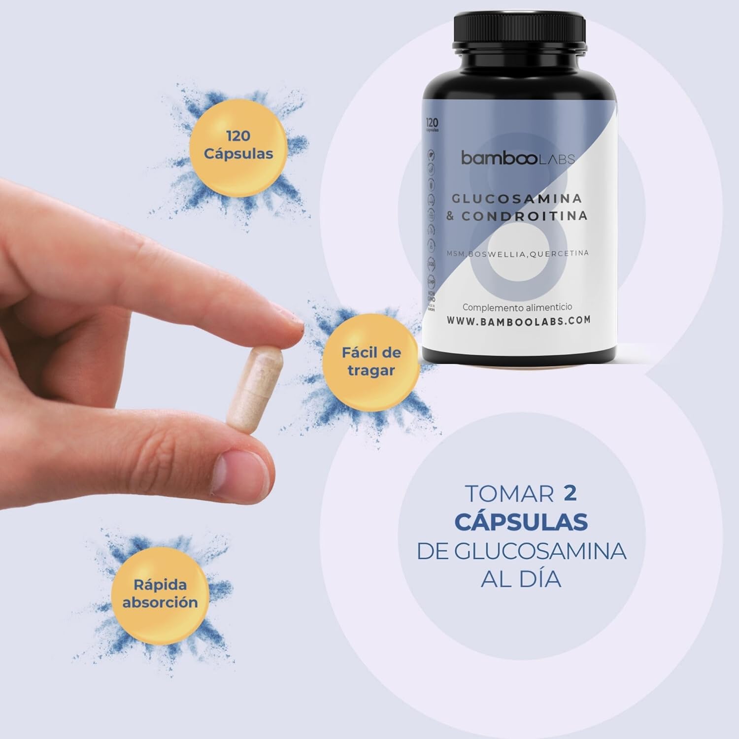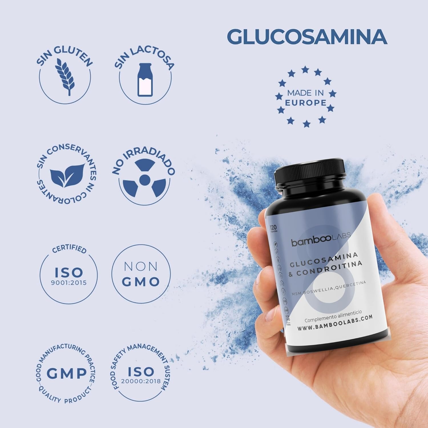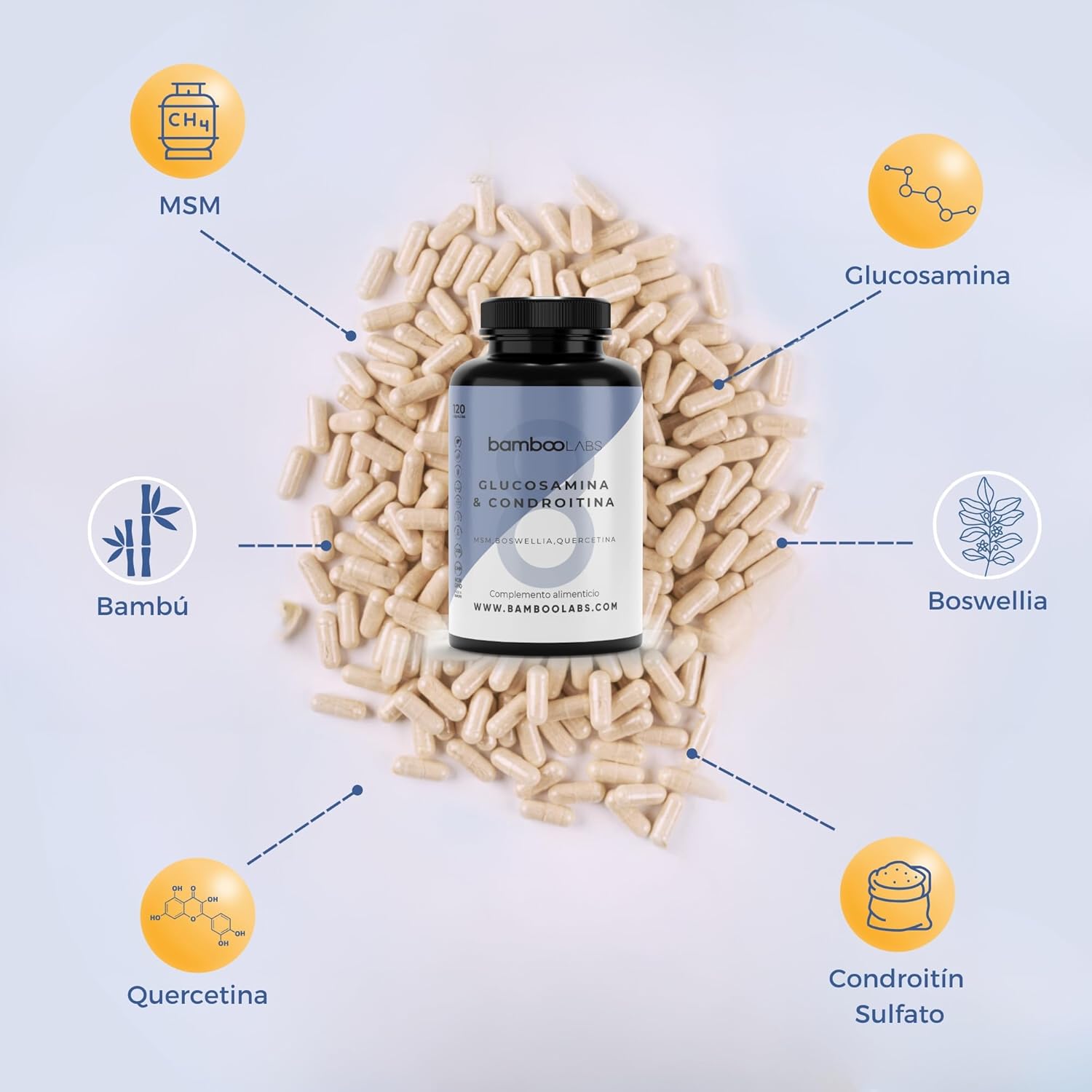 Bamboo Labs – Glucosamine with Chondroitin, MSM, Quercetin, Hyaluronic Acid, Boswellia and Bambu, 120 Chondrosteo Joint Capsules, Natural Anti-Inflammatory, Reduce Joint Pain