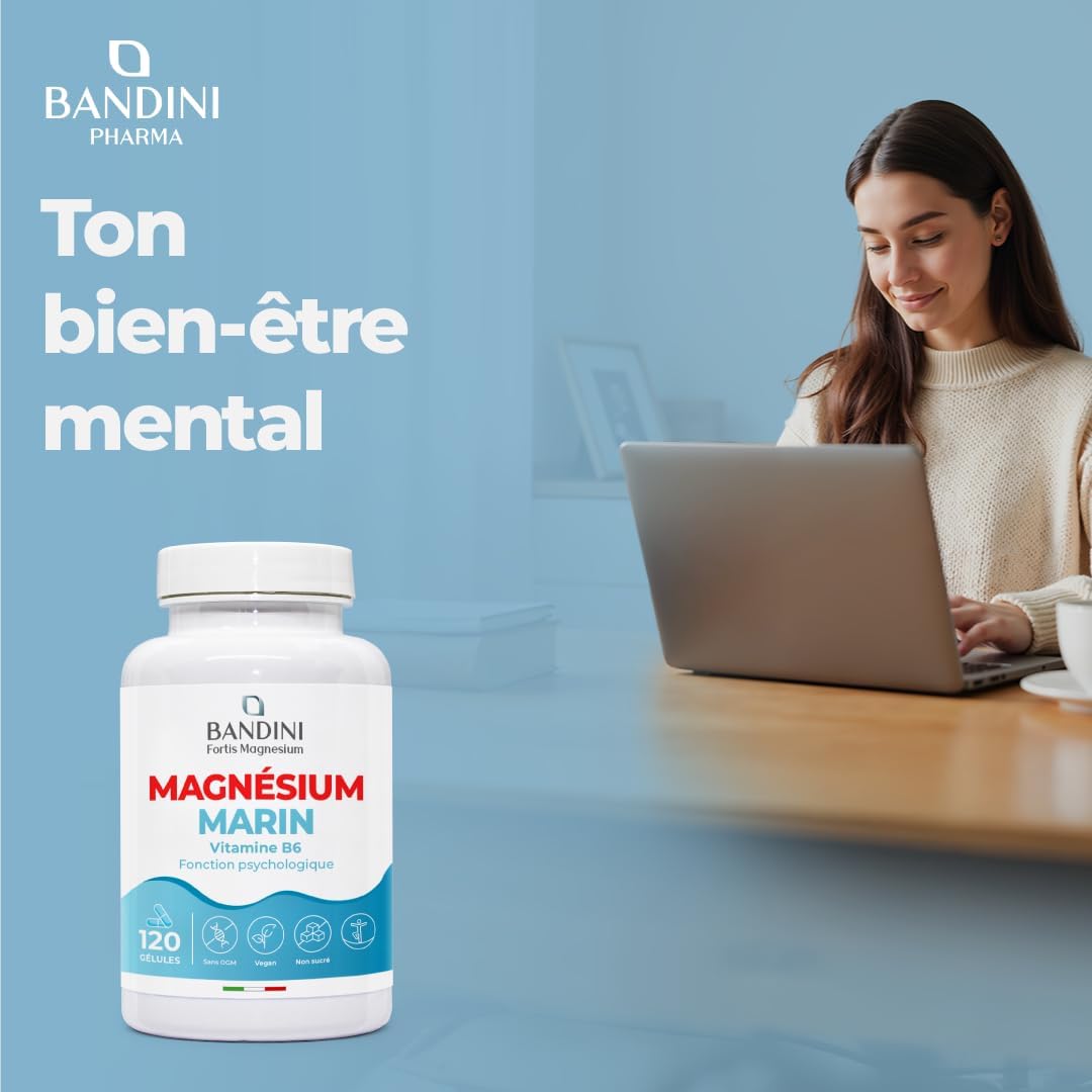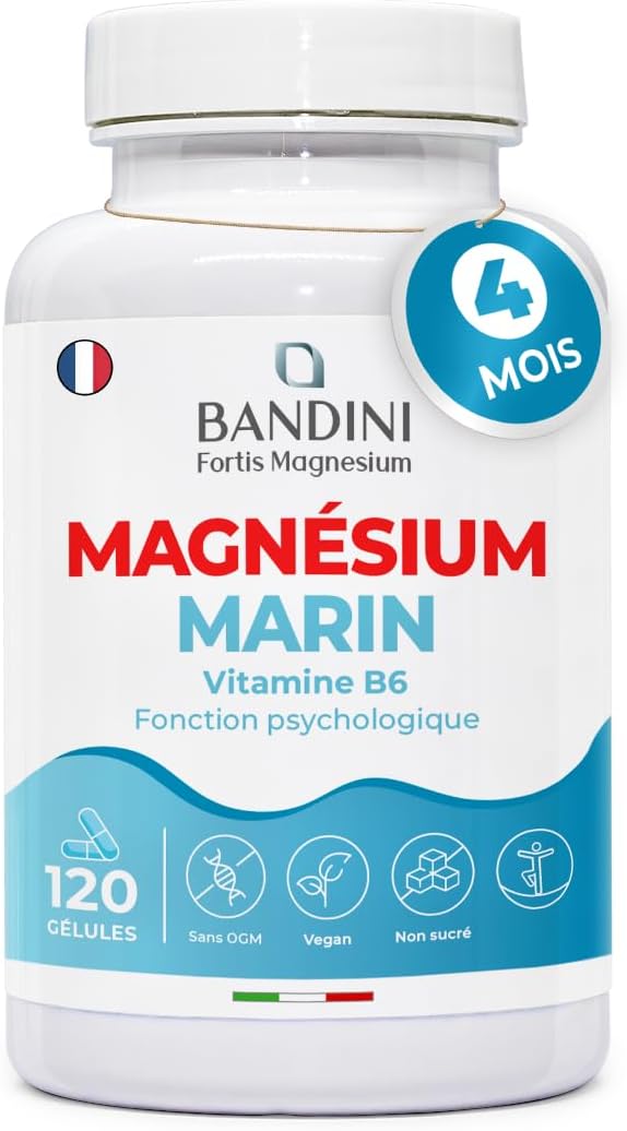 🥇 PRACTICAL AND DURABLE MAGNESIUM. Thanks to its high concentration and very good absorption, you only have one capsule to take per day, for 200 mg of active magnesium and thus benefit from all its benefits. Our capsules are very easy to swallow. Bandini offers you an economical format of 120 capsules, a cure of 4 months. Packaging may vary.