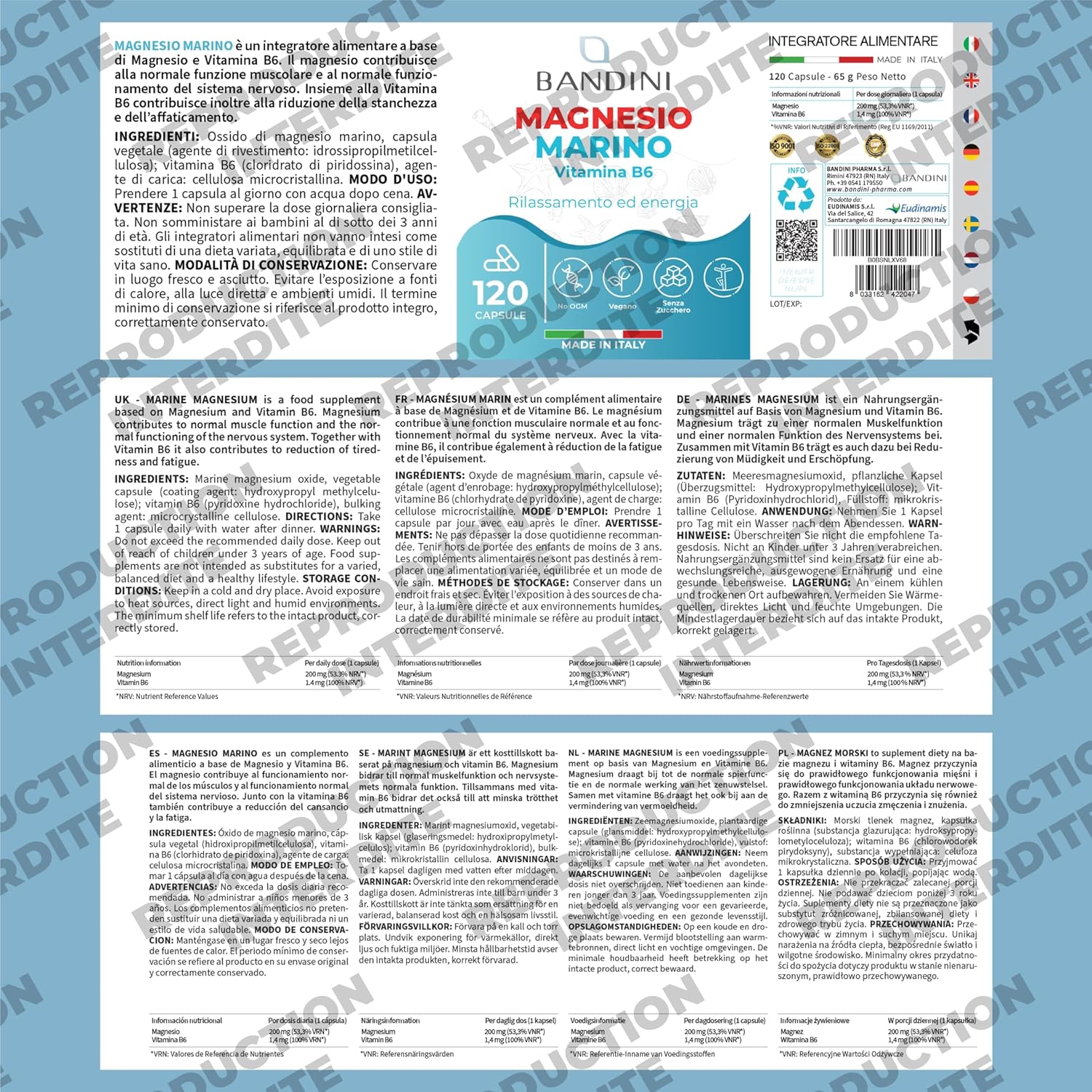 BANDINI: Our magnesium is made in Italy. All our ingredients are guaranteed to be GMO free, additive, pesticide and allergen-free. The capsules are 100% vegetable (compatible with vegetarian or vegan diets).