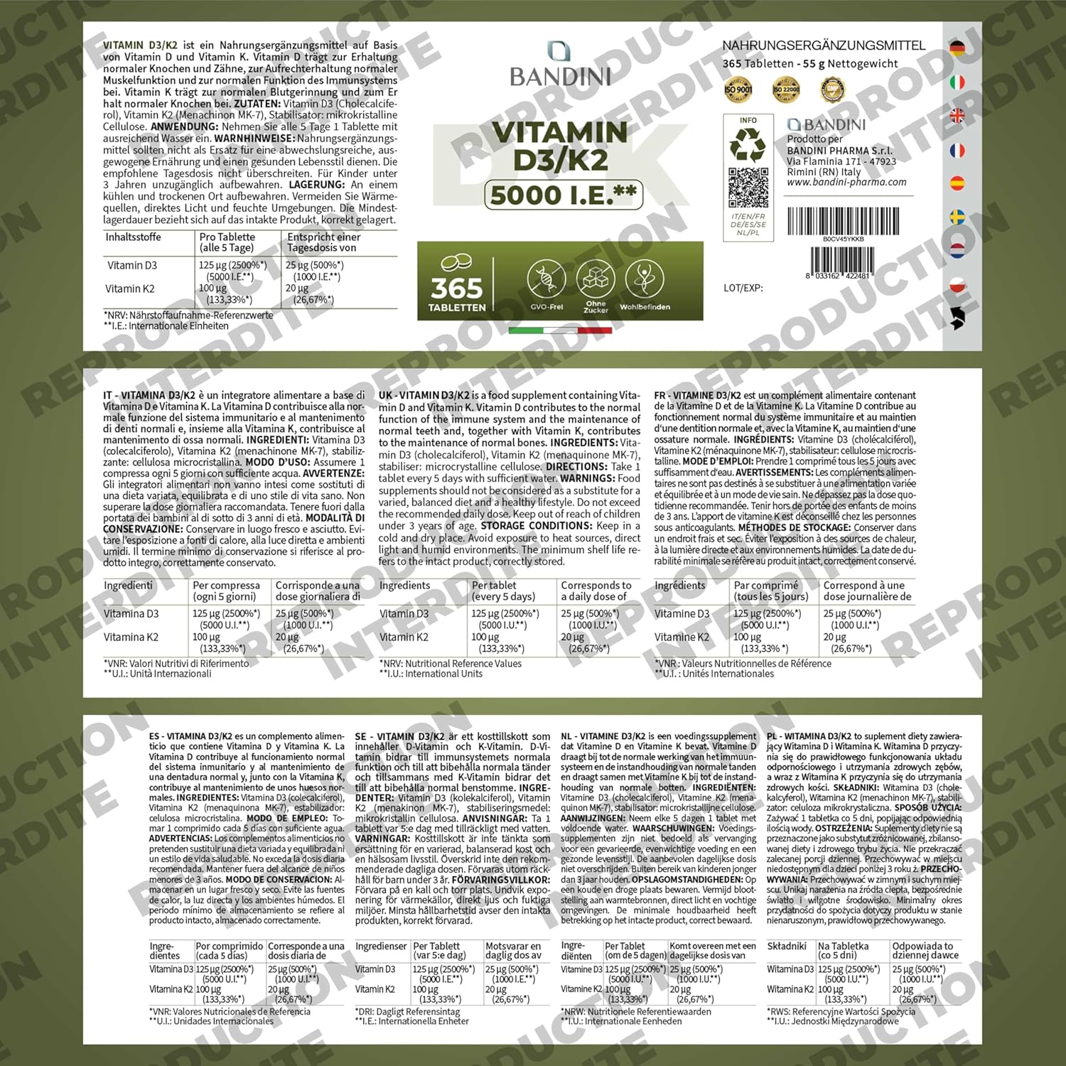 Certified product. Bandini Pharma is an Italian company that offers innovative, high-quality products for your health and well-being in a dynamic and professional way: Our products are manufactured in our GMP certified laboratory, UNI EN ISO 9001:2015 and ISO 22000:2018.