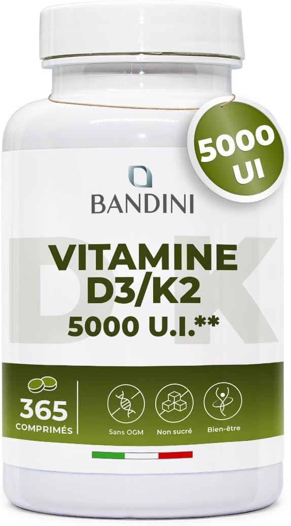 Be the first to review “Bandini Vitamin D3 K2 365 Tablets 30,000 IU per month, Vitamins D 5000 IU/tablet, Premium Quality, 100 mcg K2, 99.7+% All-Trans K 2-MK7 + 125mcg Cholecaciferol, Bones, Teeth, Immune System” Cancel reply