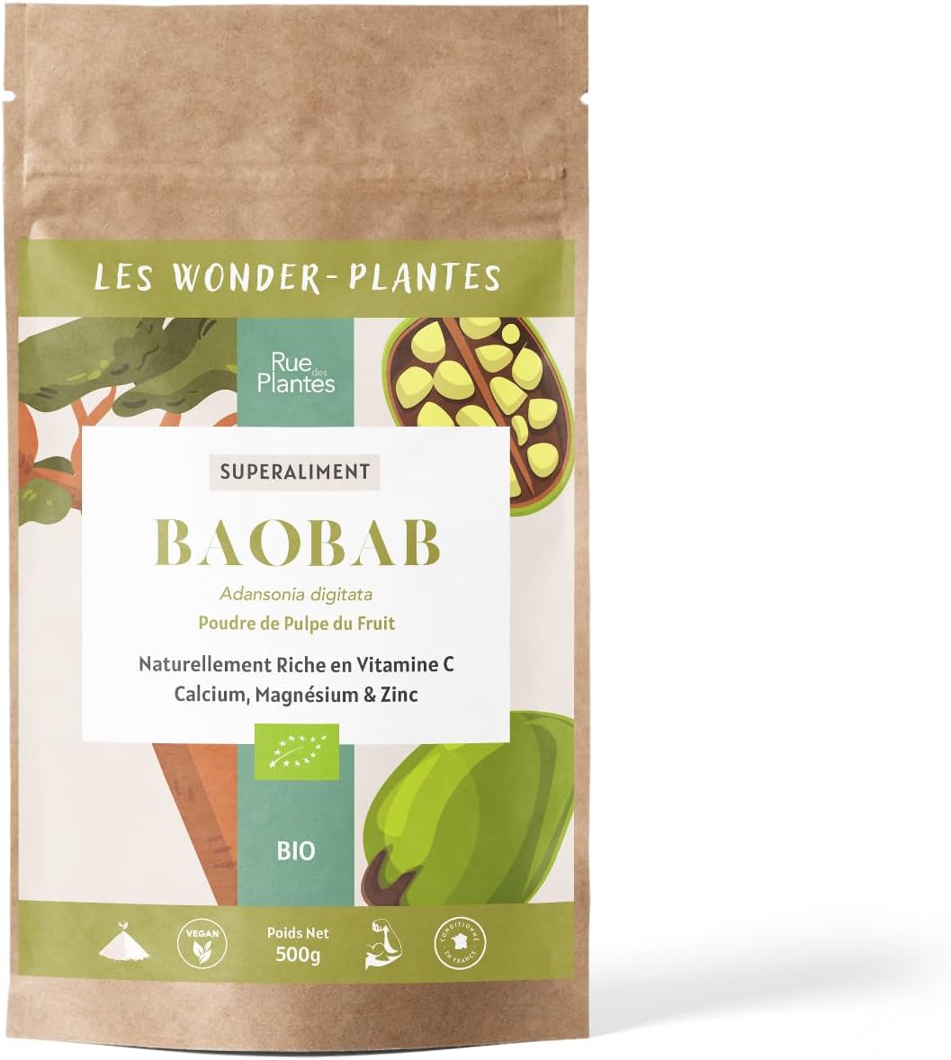 Baobab Bio Powder 500g – Natural Superfood Rich in Vitamin C & Fibre, Promotes Energy, Digestion and Natural Defenses | Packaged in France, RUE DES PLANTES
