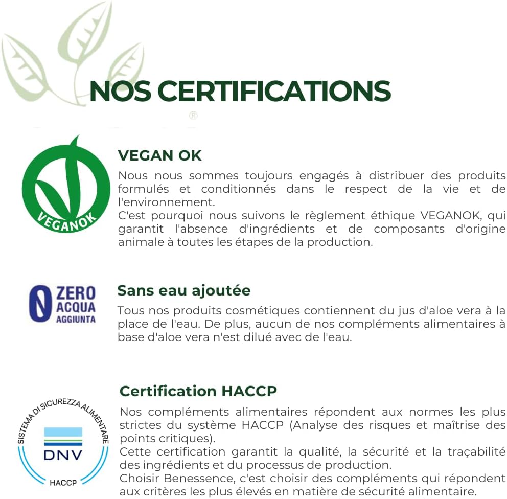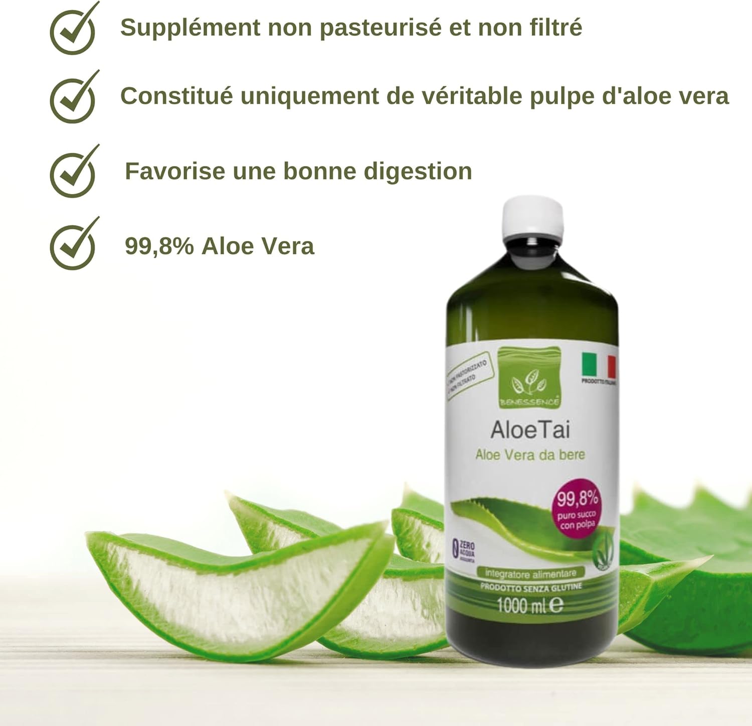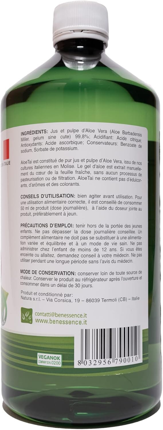 ALOE VERA JUICE: Our Aloe Vera juice is extracted from Aloe Barbadensis Miller plants from our organic crops located in the Italian region of Molise. Our mission is to promote a healthy lifestyle through the knowledge and use of healthy and quality products, all based on Aloe Vera. By providing consumers with safe information and tools to achieve their health goals, Benessence becomes a leader in responsible nutrition.