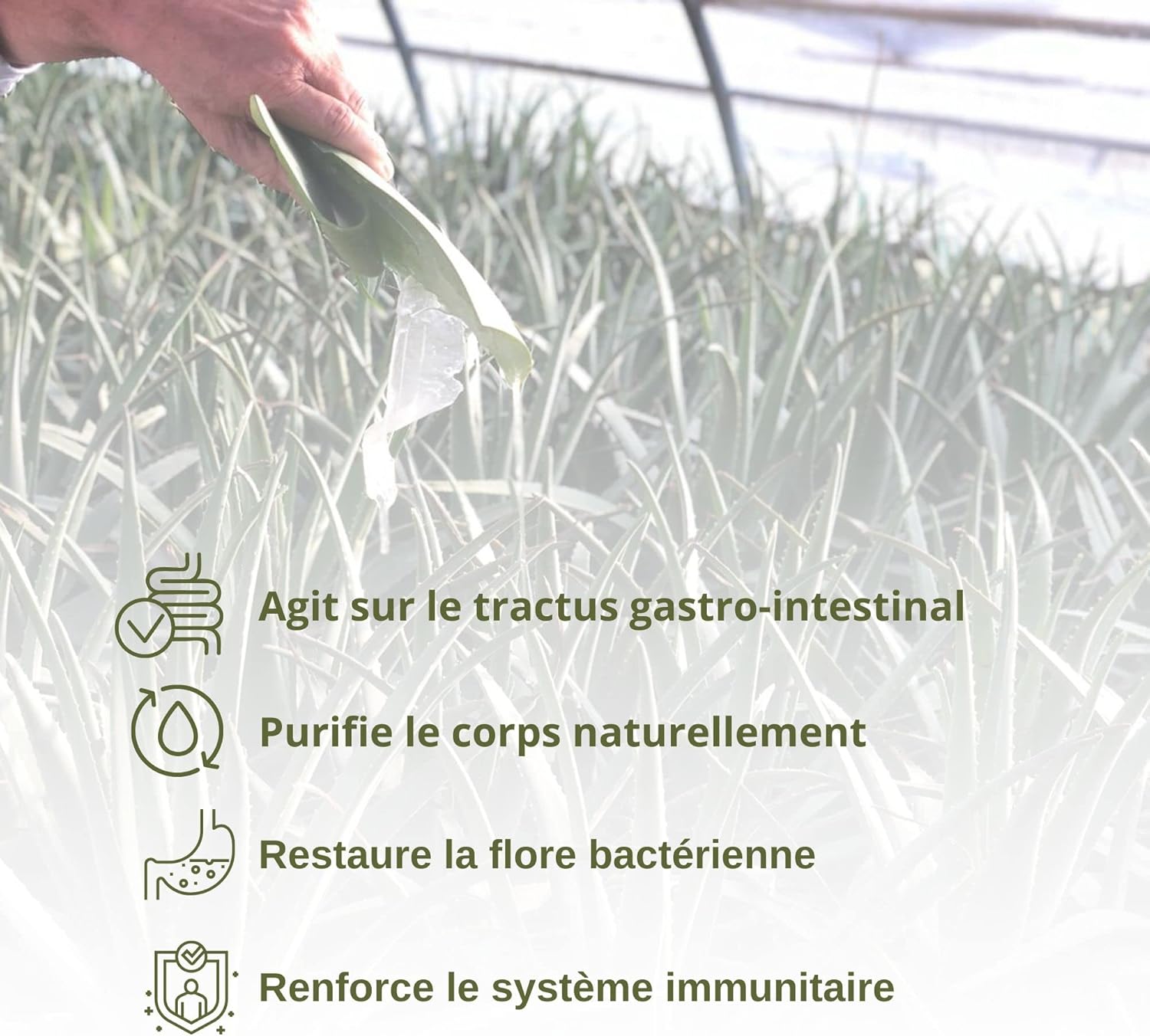 SUPPORT HEALTHY DIGESTION: Best ally of well-being, Aloe Vera improves intestinal bacterial flora and gastric flow by promoting digestion, and this naturally without the need for enzymes or probiotics. Aloe Vera provides relief from the occasional release of gas caused by indigestion, swelling and more.