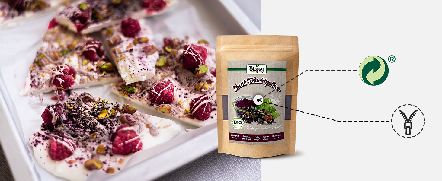 ➤ OUR TIP | The deep dark purple color of our organic acai powder is of natural origin and is a sign of quality. As a pure natural product, our powder is guaranteed free of dyes.