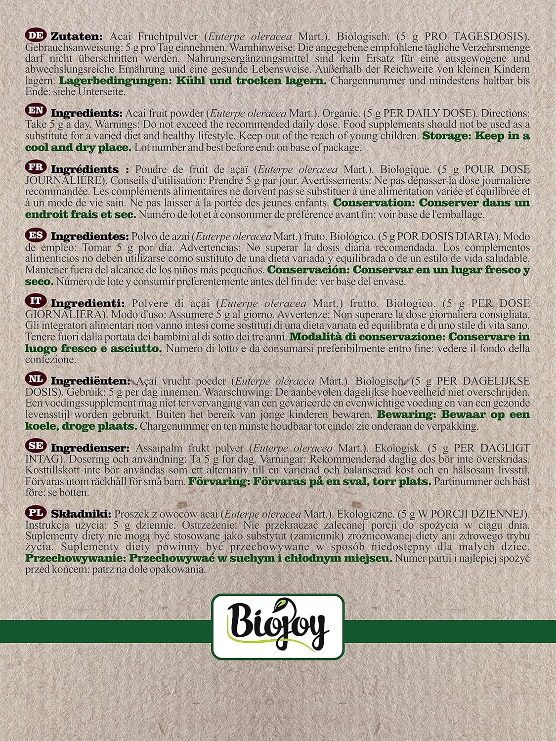 Be the first to review “Biojoy Acai Powder Organic (250g), Freeze-dried Acai Berry Powder (Euterpe oleracea Mart.)”