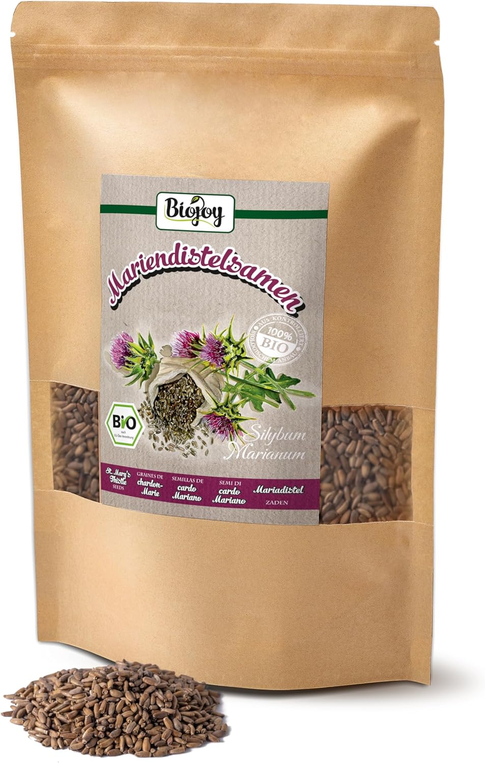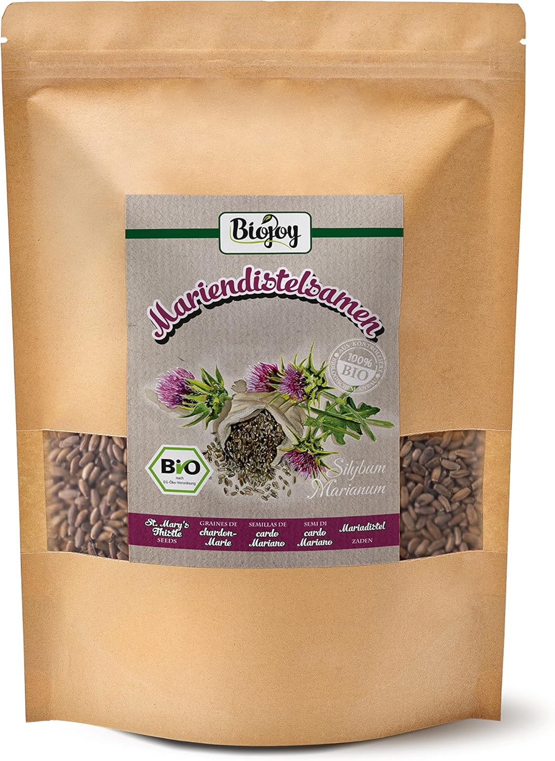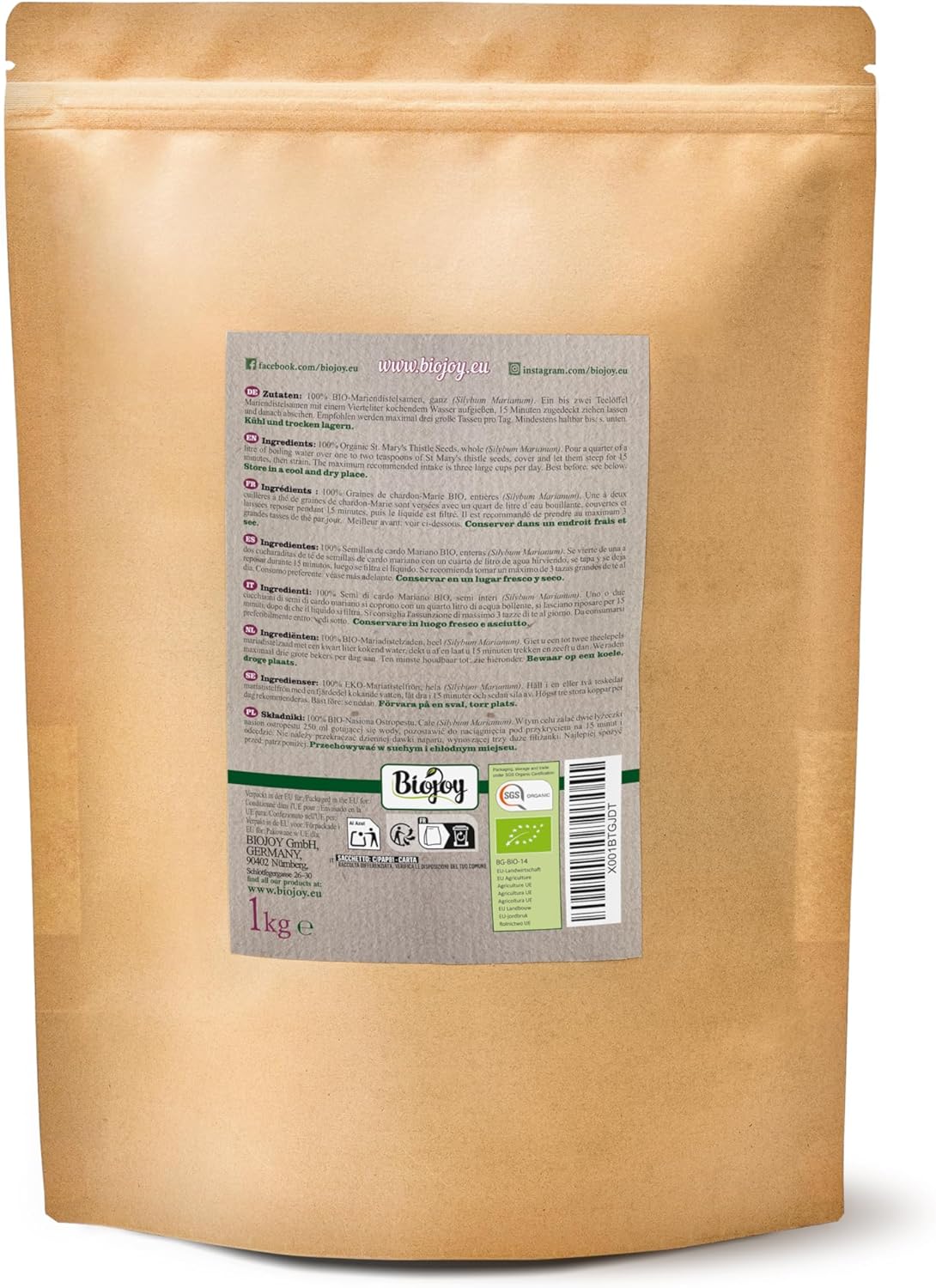 Biojoy Organic Milk Thistle Seeds (1kg), Dried and Whole Milk Thistle Herbal Tea (Silybum Marianum)