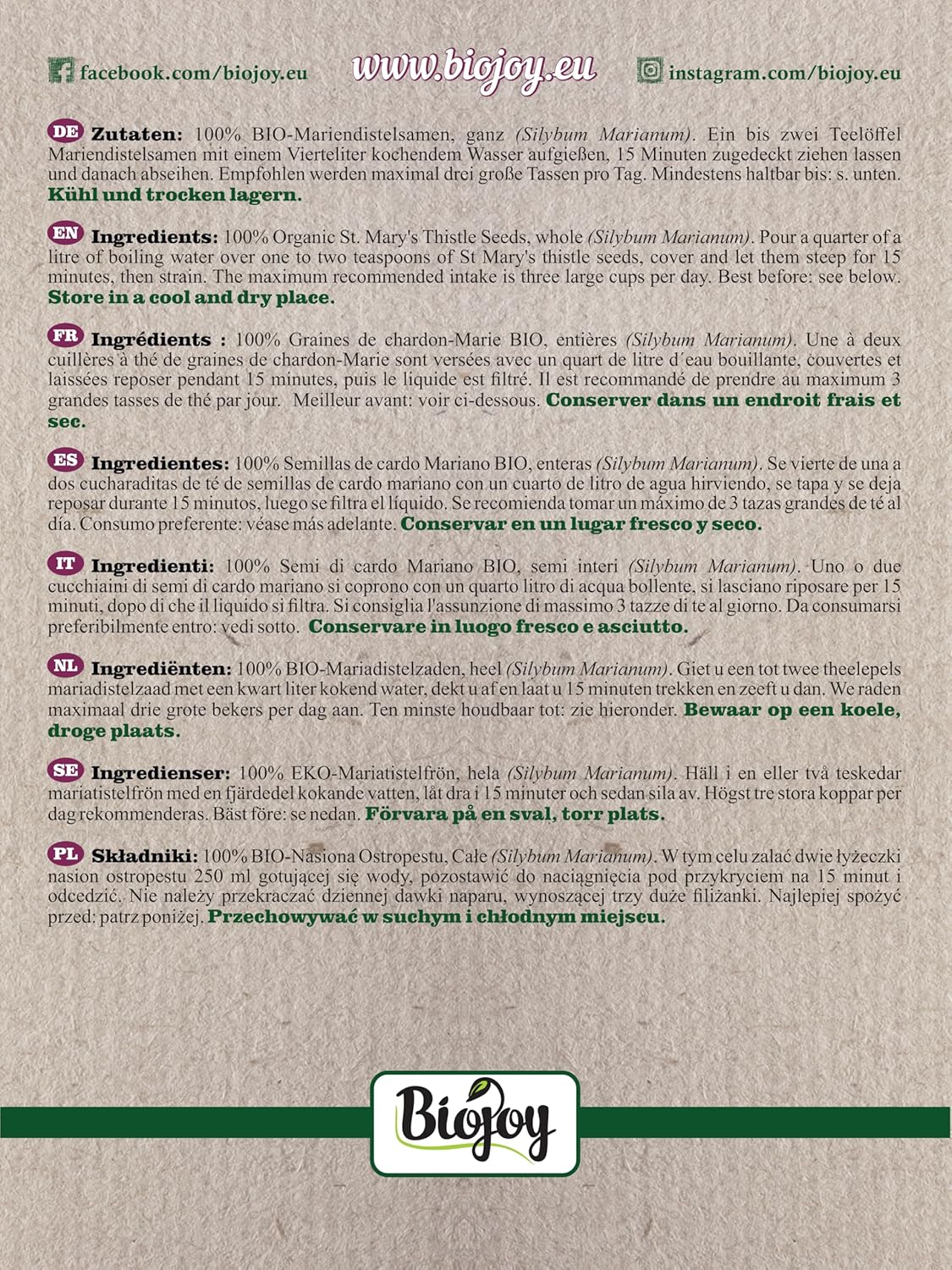 ➤ WHY? | From sowing, collection and packaging, our organic milk thistle seeds are a pure natural product, without additives, packed in a package that retains the flavors.
