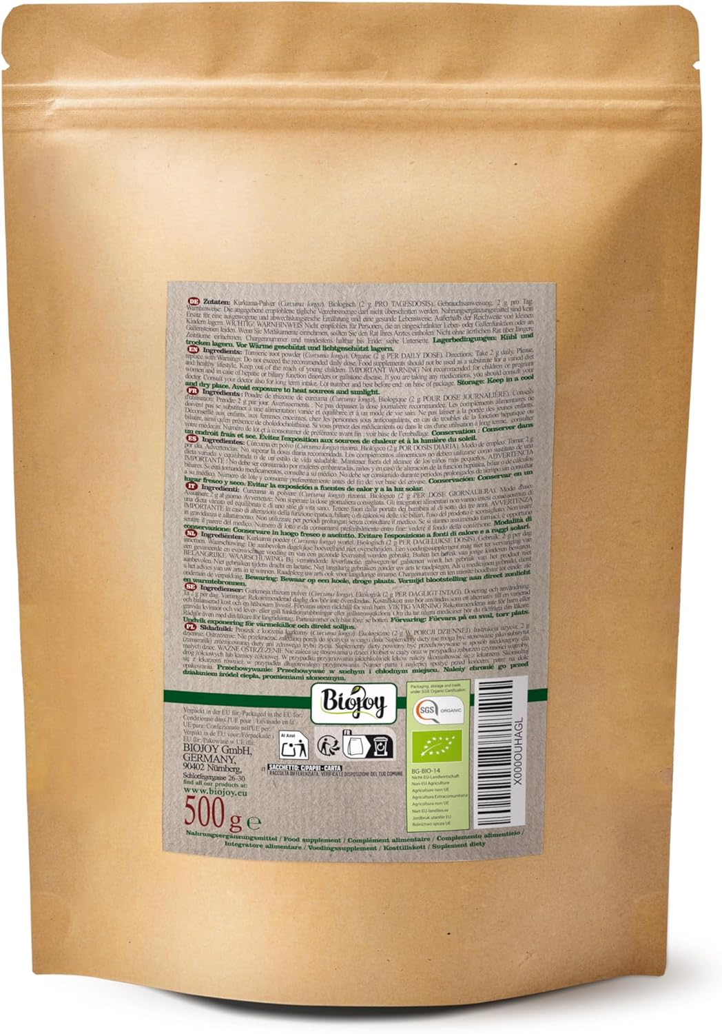 Biojoy Turmeric powder BIO (500g), Ground turmeric root (Curcuma longa)