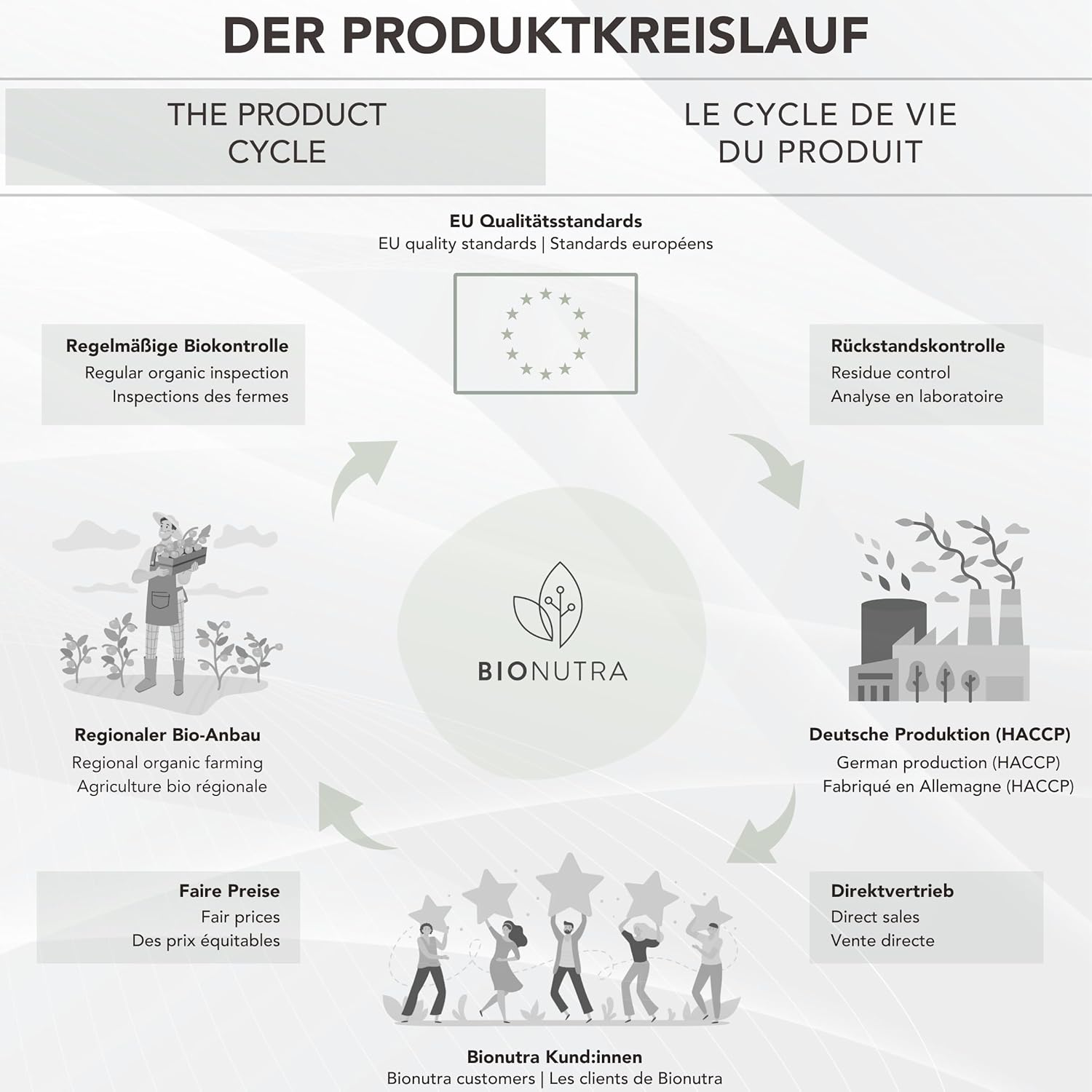 GERMAN QUALITY: Bionutra capsules are made from high quality natural raw materials and a plant husk (HPMC). They are vegan, lactose free, gluten free and additives. Each batch is produced in Germany according to HACCP standards.
