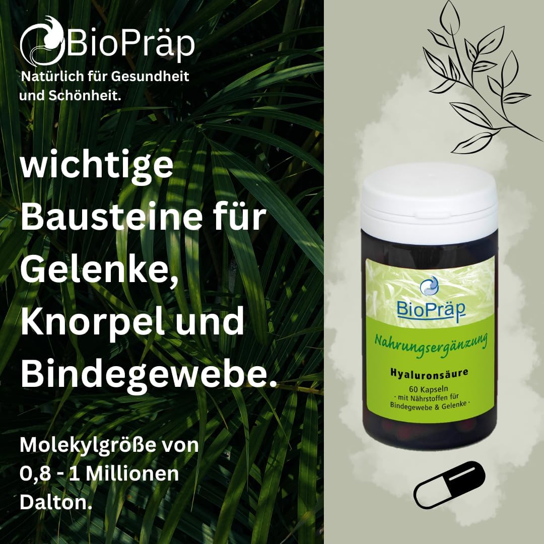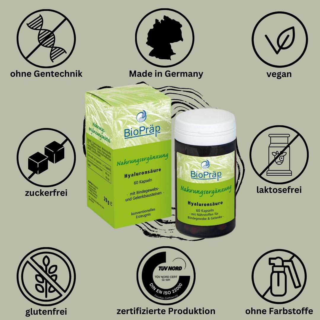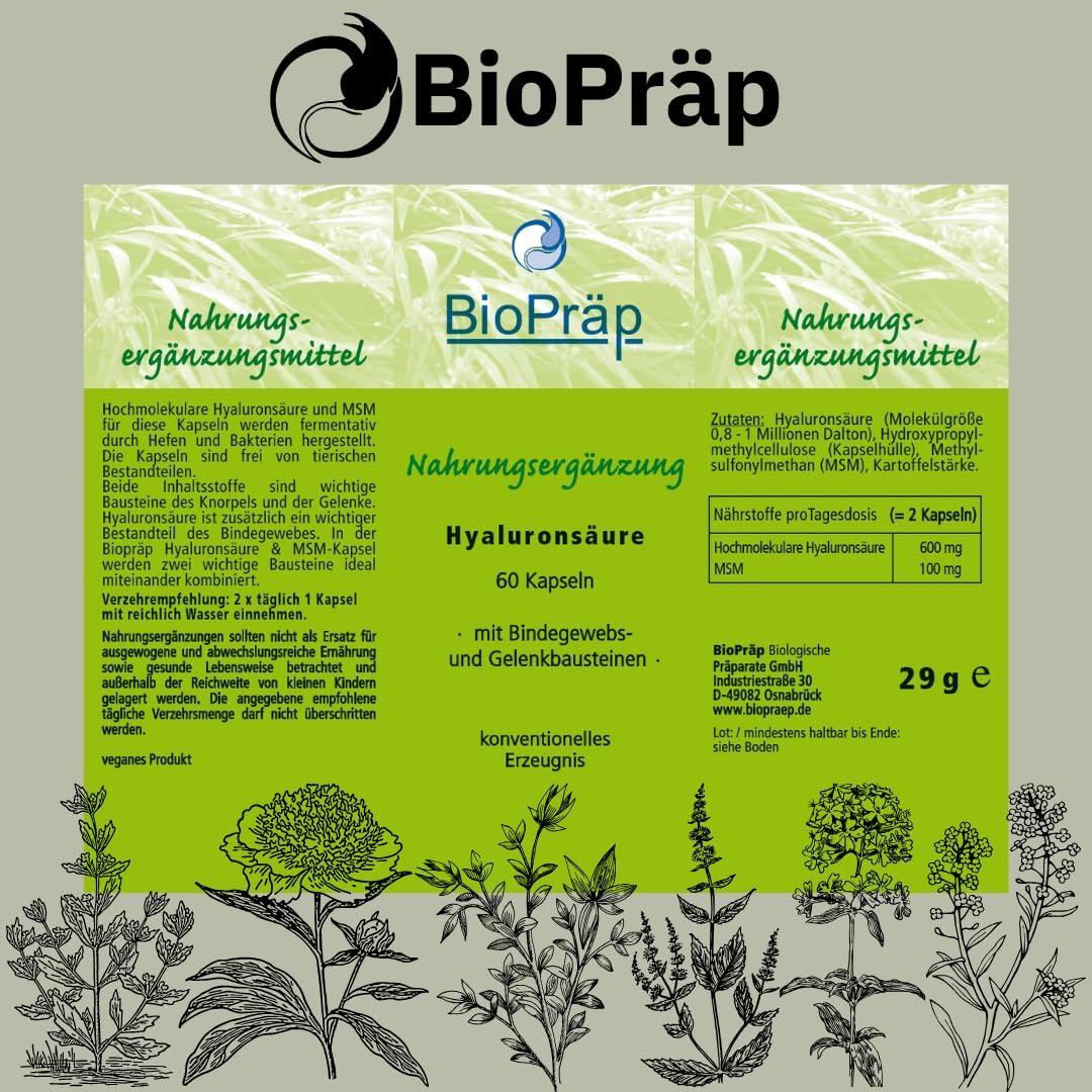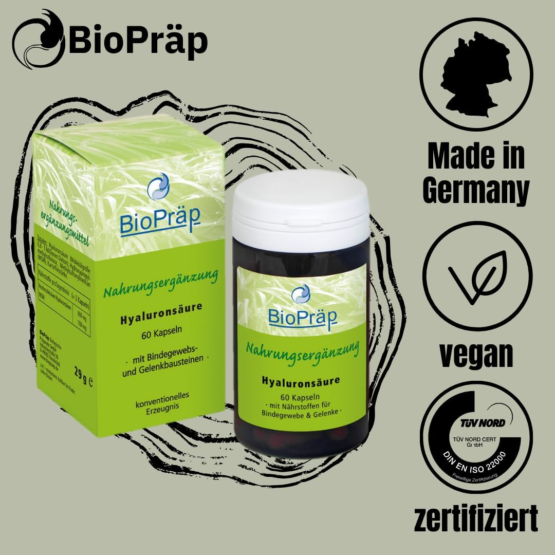 BioPräp Hyaluronic Acid Capsules with MSM, Vegan, Certified Production, Pack of 60