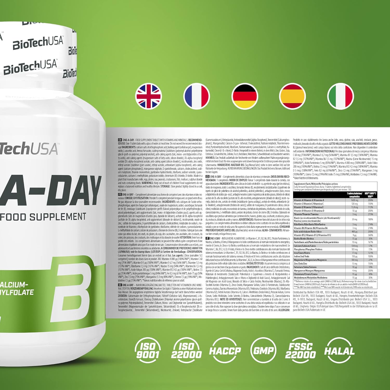 BioTechUSA One-A-Day Multivitamin | 12 Vitamins | 10 Minerals | Energy, Immune & Bone Health, 100 Tablets