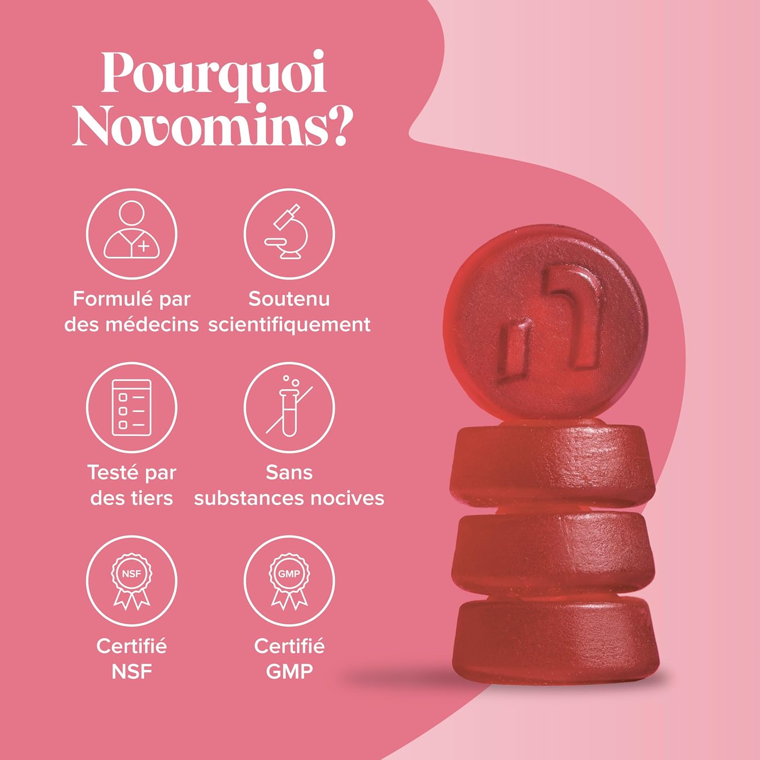 WHY CHOOSE NOVOMINS HAIR CAPSULES? Our biotin vitamins for hair growth and hair loss are manufactured to the highest production standards (GMP), with pure, ethically sourced and easy-to-digest ingredients. All our gummies are gluten free and not tested on animals.