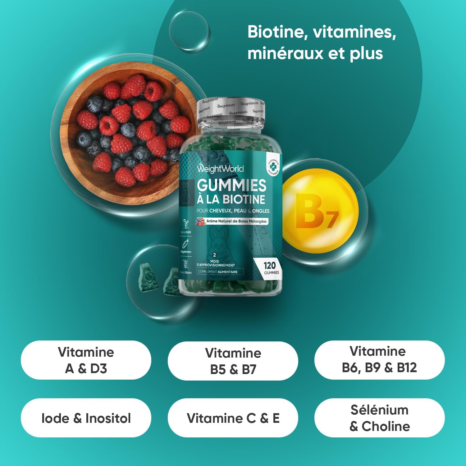 Alternative to Biotin Capsules or Tablets – WeightWorld Biotin Gummies are an alternative to skin and hair biotin tablets or capsules. This is because they do not require water and can be chewed anywhere and anytime. Finally, these 120 bunny shaped biotin gummies do not stick to teeth.