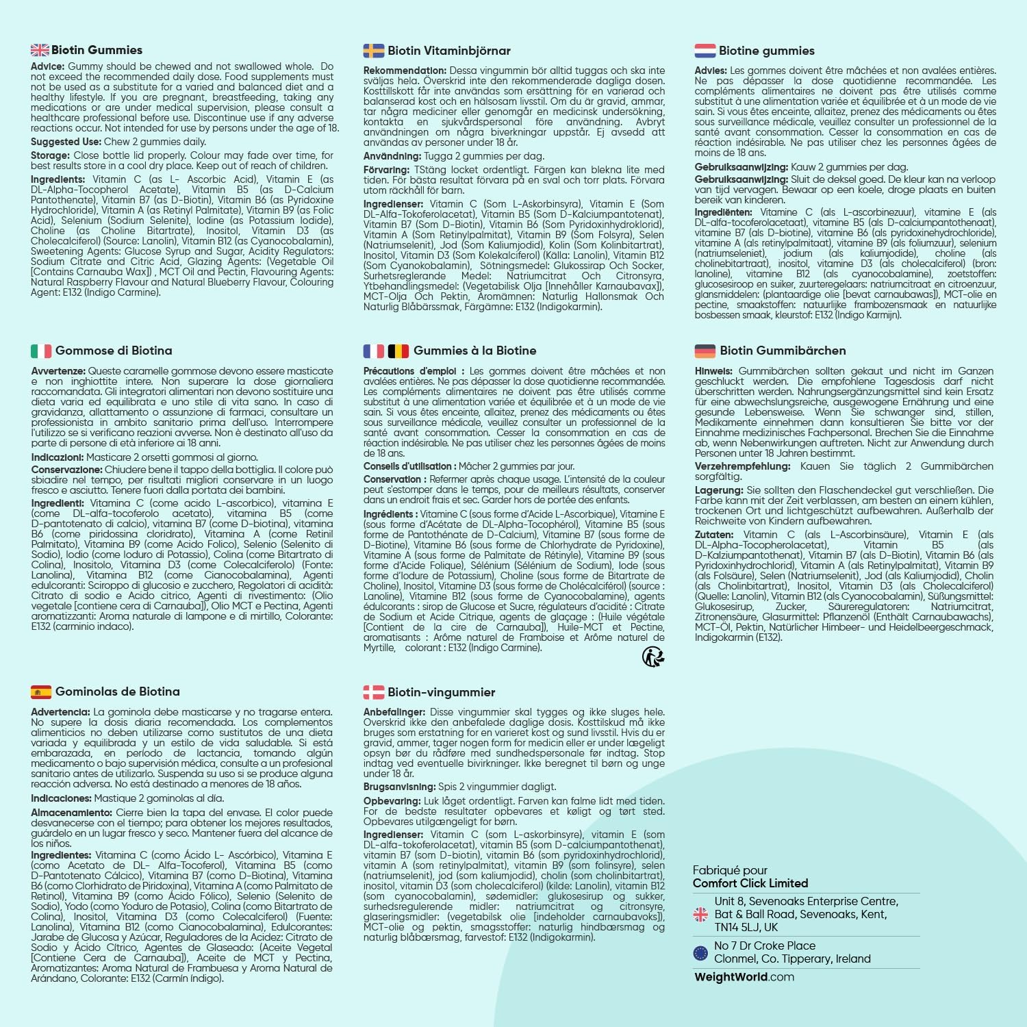 Biotin 120 Gummies, Natural Mixed Berry Flavour – According to EFSA, biotin helps maintain normal hair and normal skin – Enriched with 12 vitamins and minerals, non-GMO