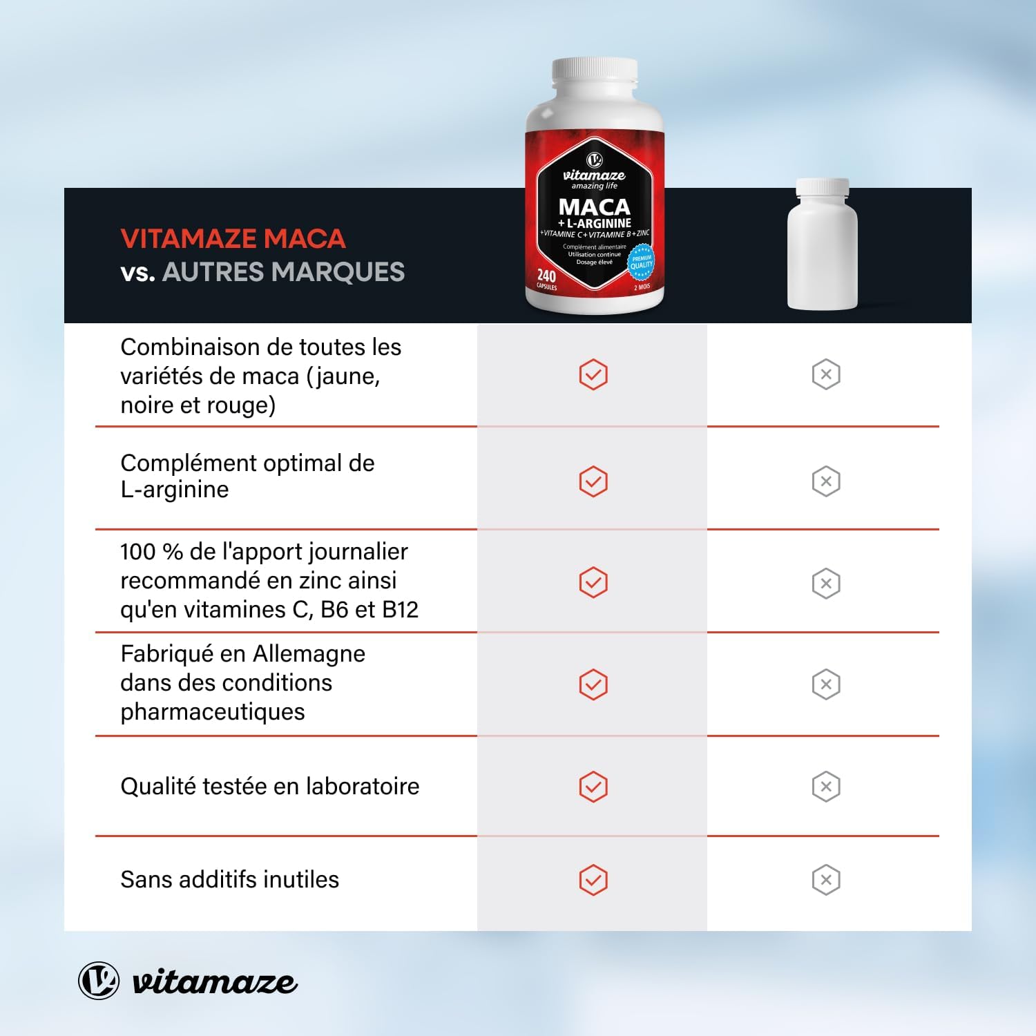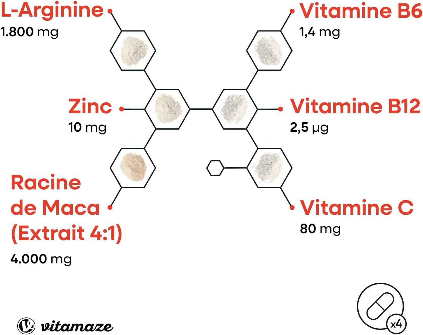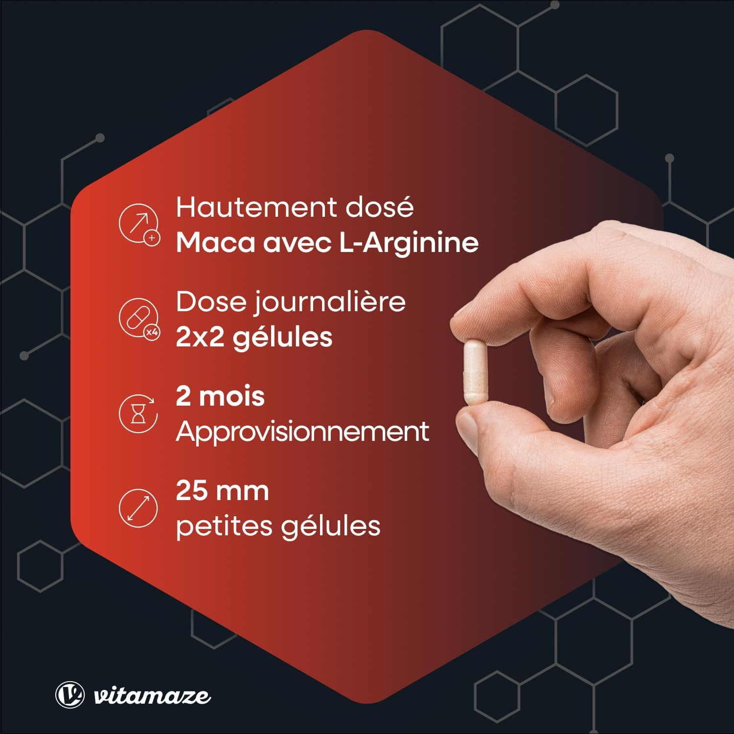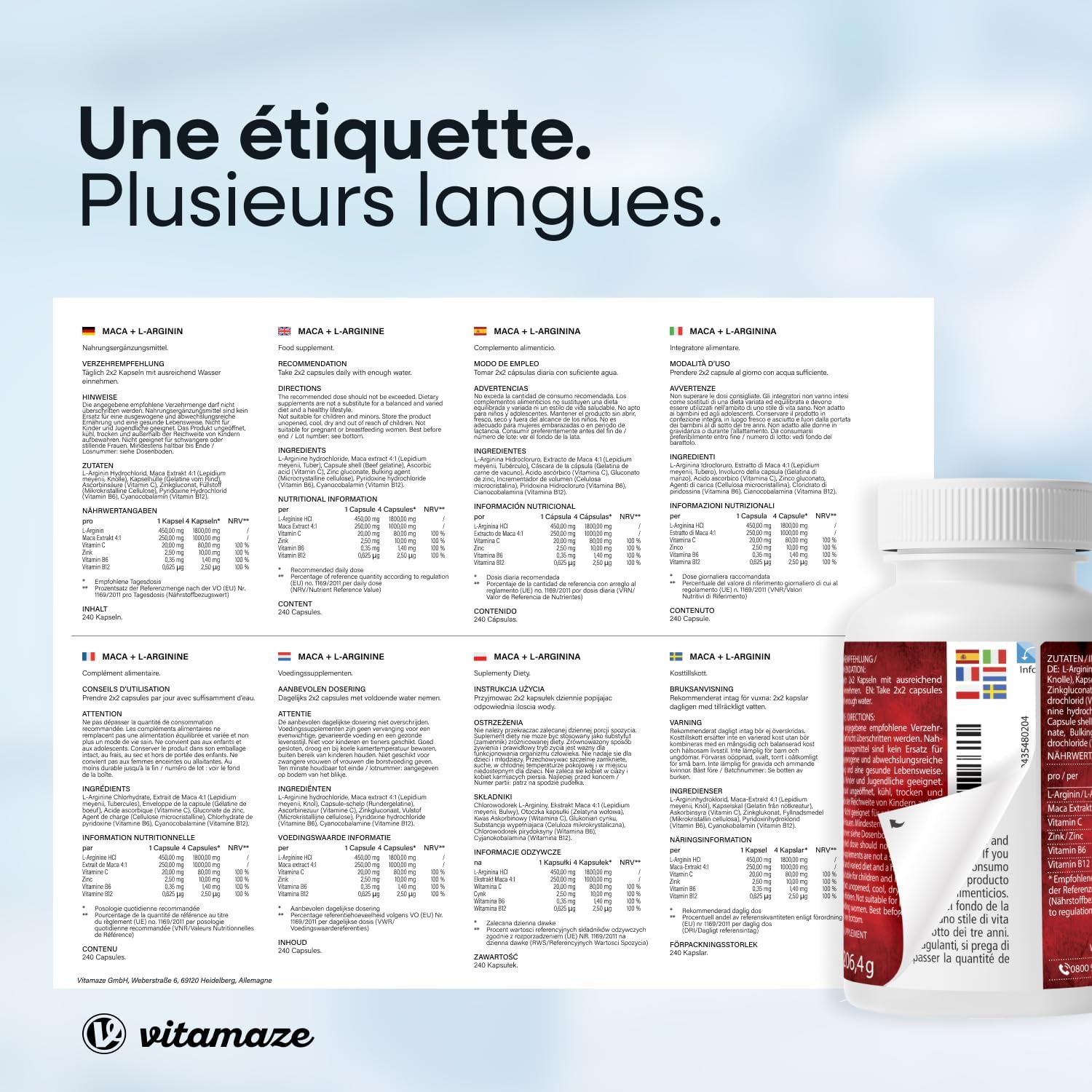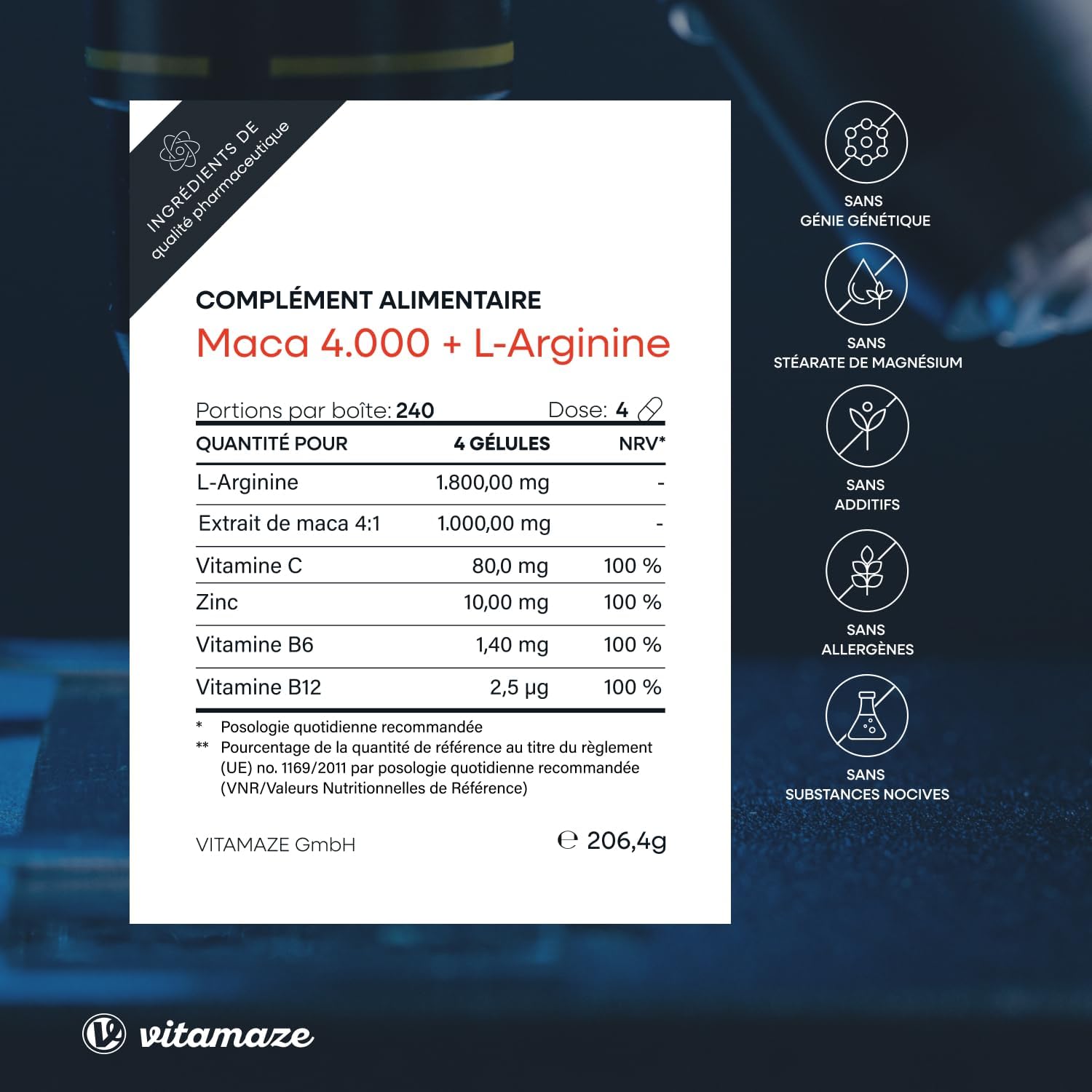 HIGHLY DOSED: 240 tablets for 2 months of continuous use with 4,000 mg Maca (Extract 4:1) per daily dose with normal body size. Refine-optimised combination with the amino acid L-arginine, zinc and essential vitamins B6, B12 and C in high doses.