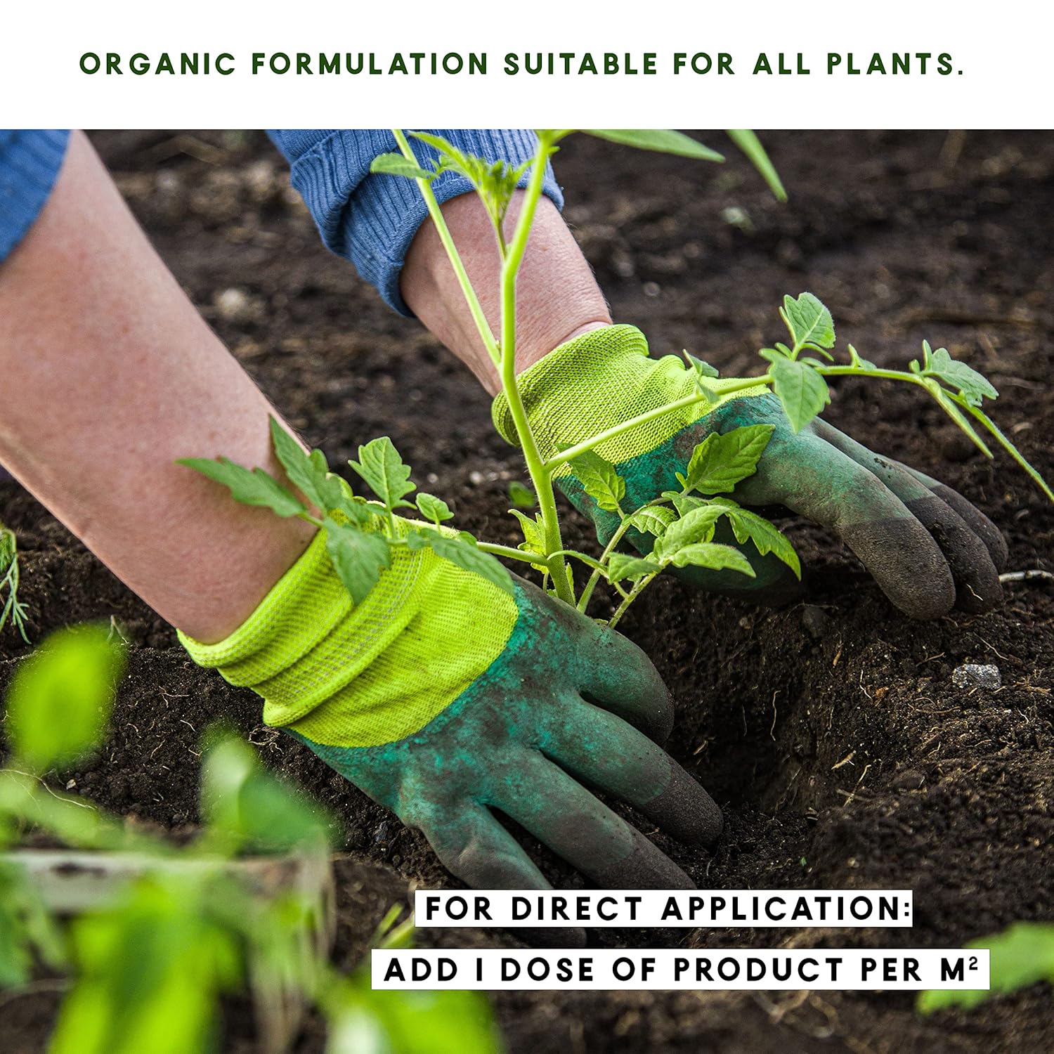 Favorise et stimule la croissance des cultures, des jardins, des plantes d’extérieur et d’intérieur.