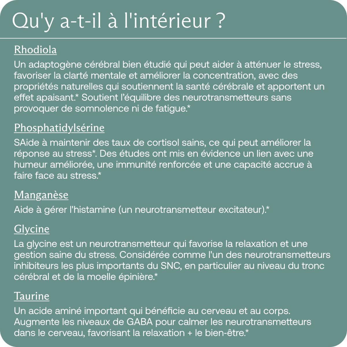 CALM & RECOVERY: Glycine, a key neurotransmitter, promotes a calm state and a healthy stress response, ideal at the end of the day or before moments of attention, and can help maintain healthy cortisol levels*