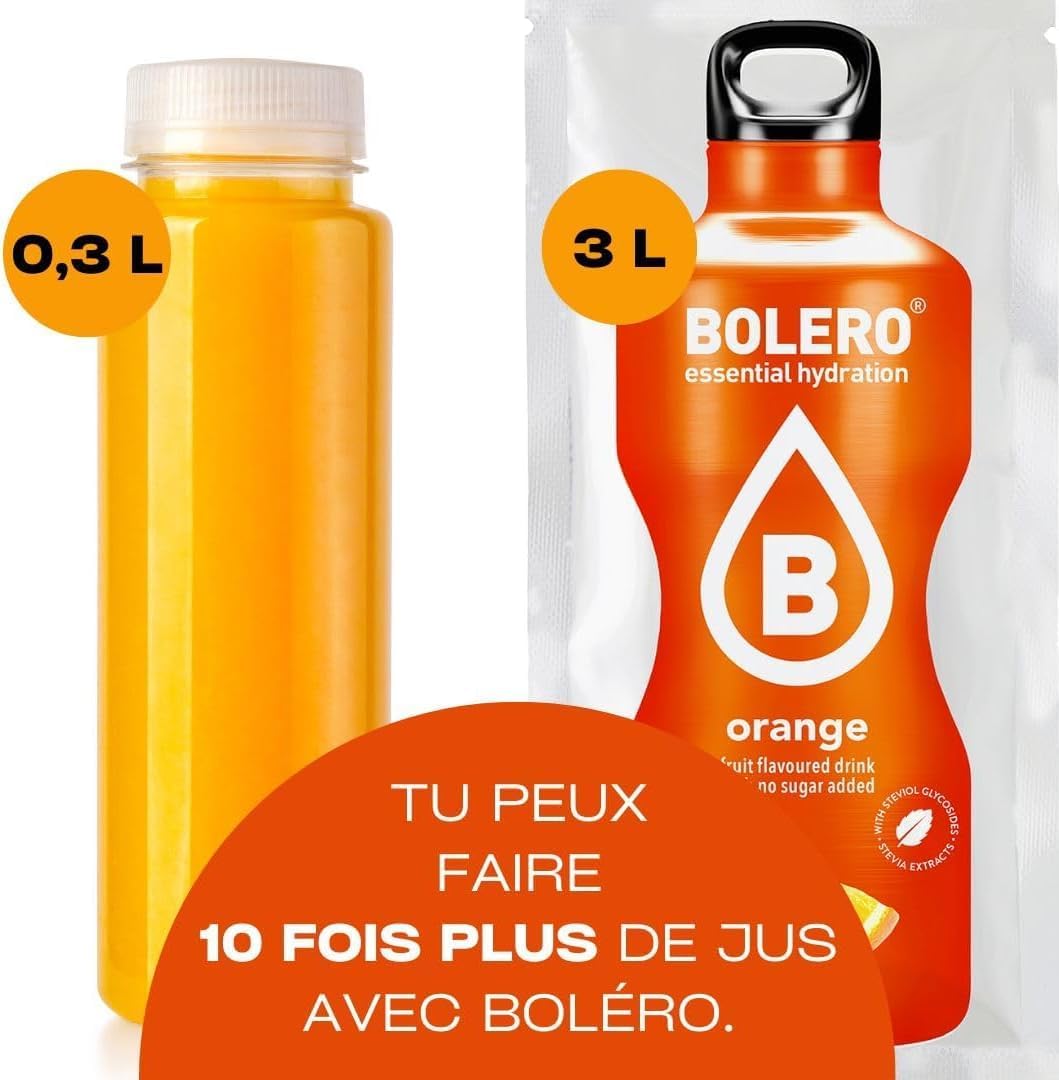 1 sachet Bolero de 9 grammes permet de préparer entre 1,5 et 3 litres de boisson. 1 sachet Bolero de 3 grammes permet de préparer entre 0,5 et 1 litre de boisson.