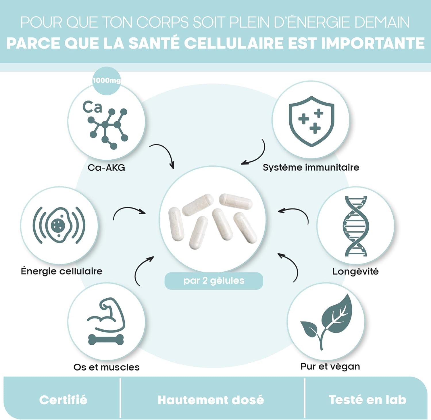 ✅ Our Calcium-Alphaketoglutarate supplement is an ideal solution to maximize your athletic potential and promote recovery.